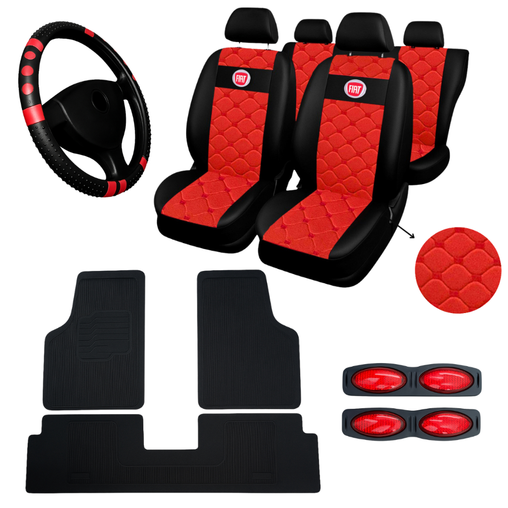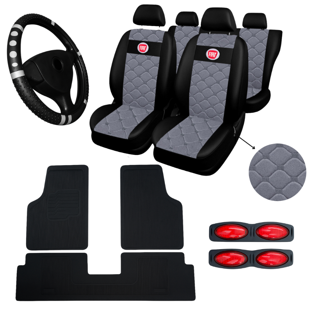 Kit Capas Bancos Couro Carro Tapetes Volante Cronos + capa de volante de carro fiat