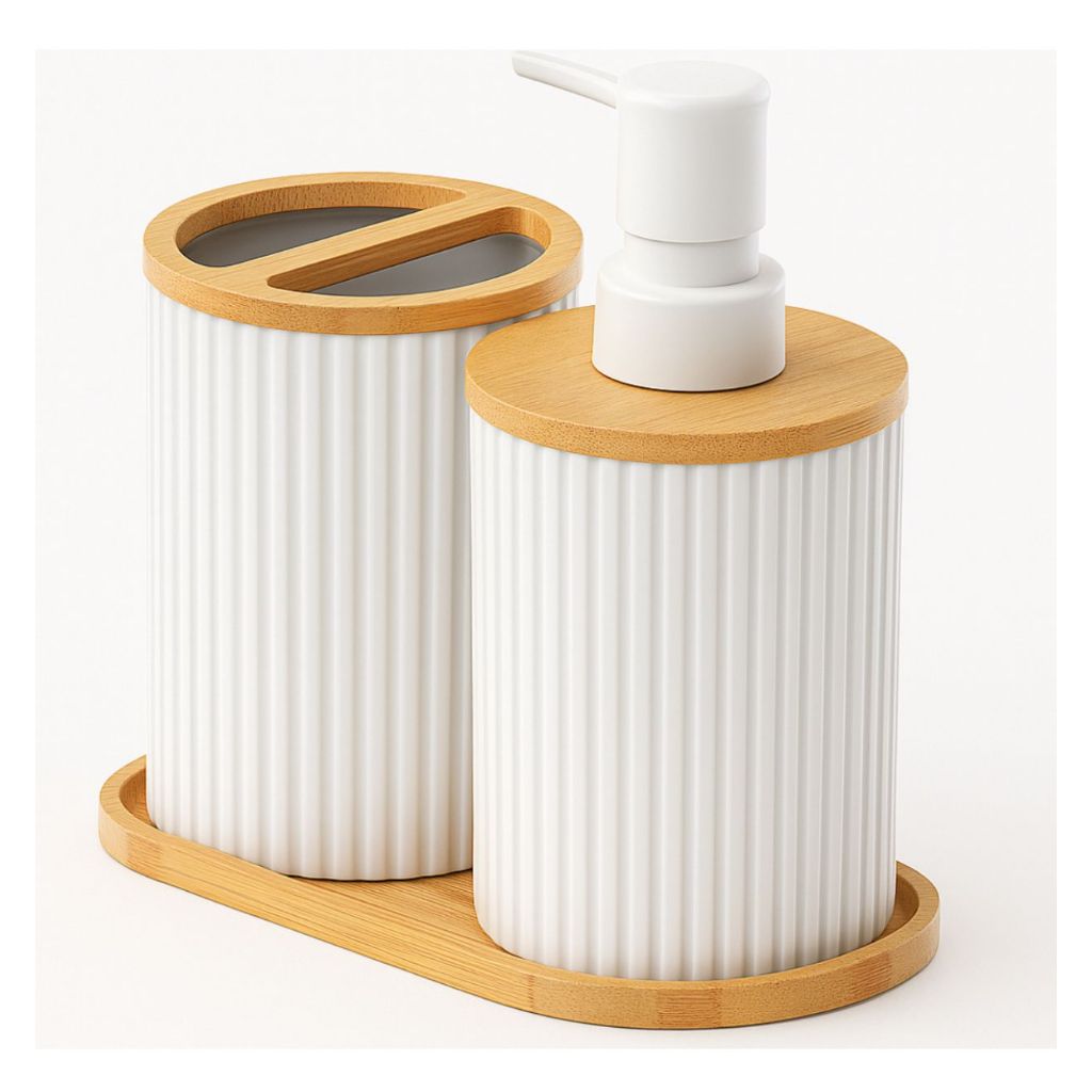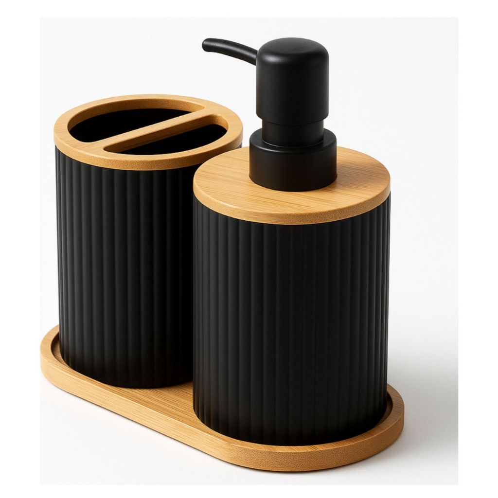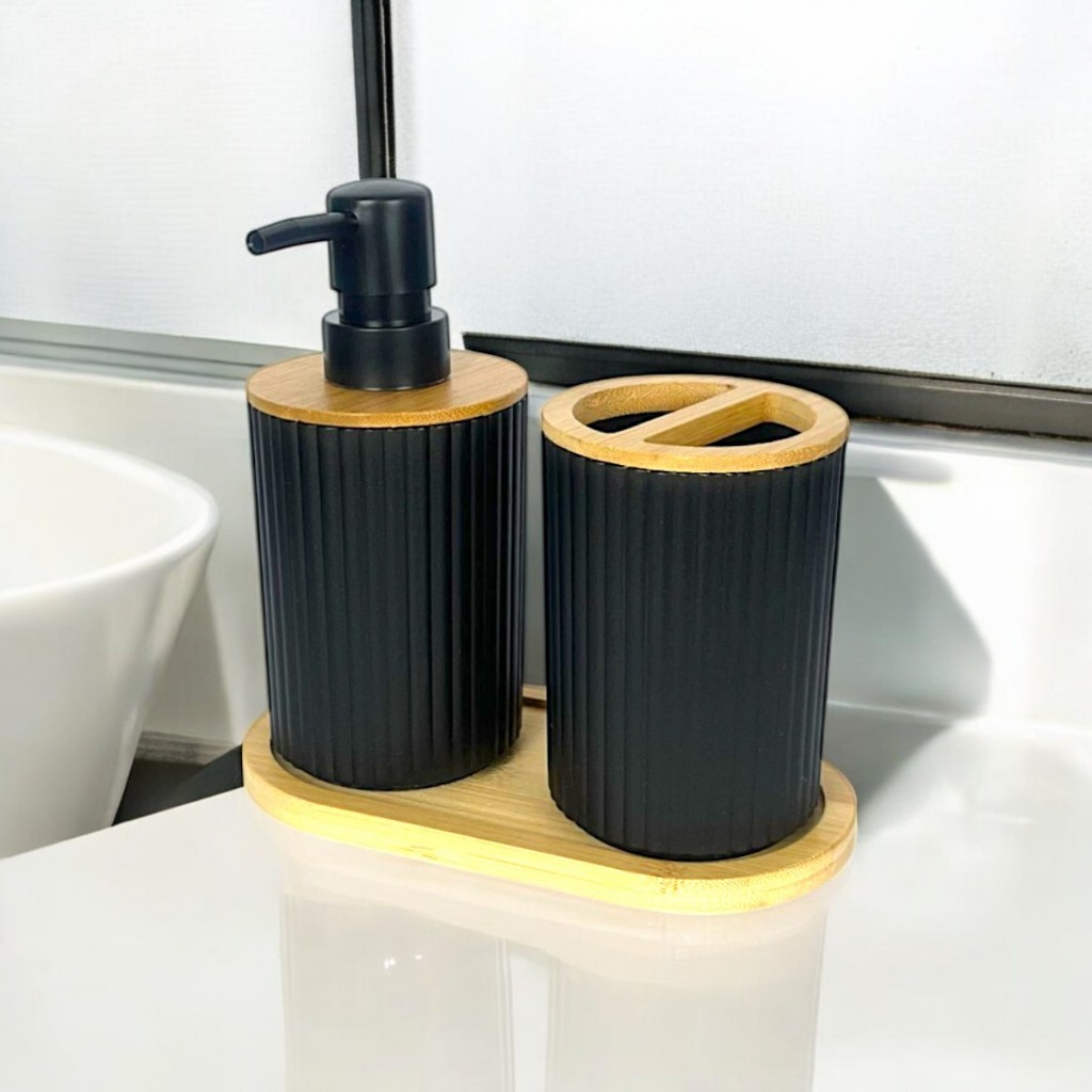Kit Lavabo Porta Escova E Sabonete Liquido Com Base 3Pcs