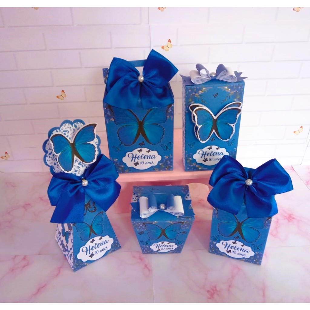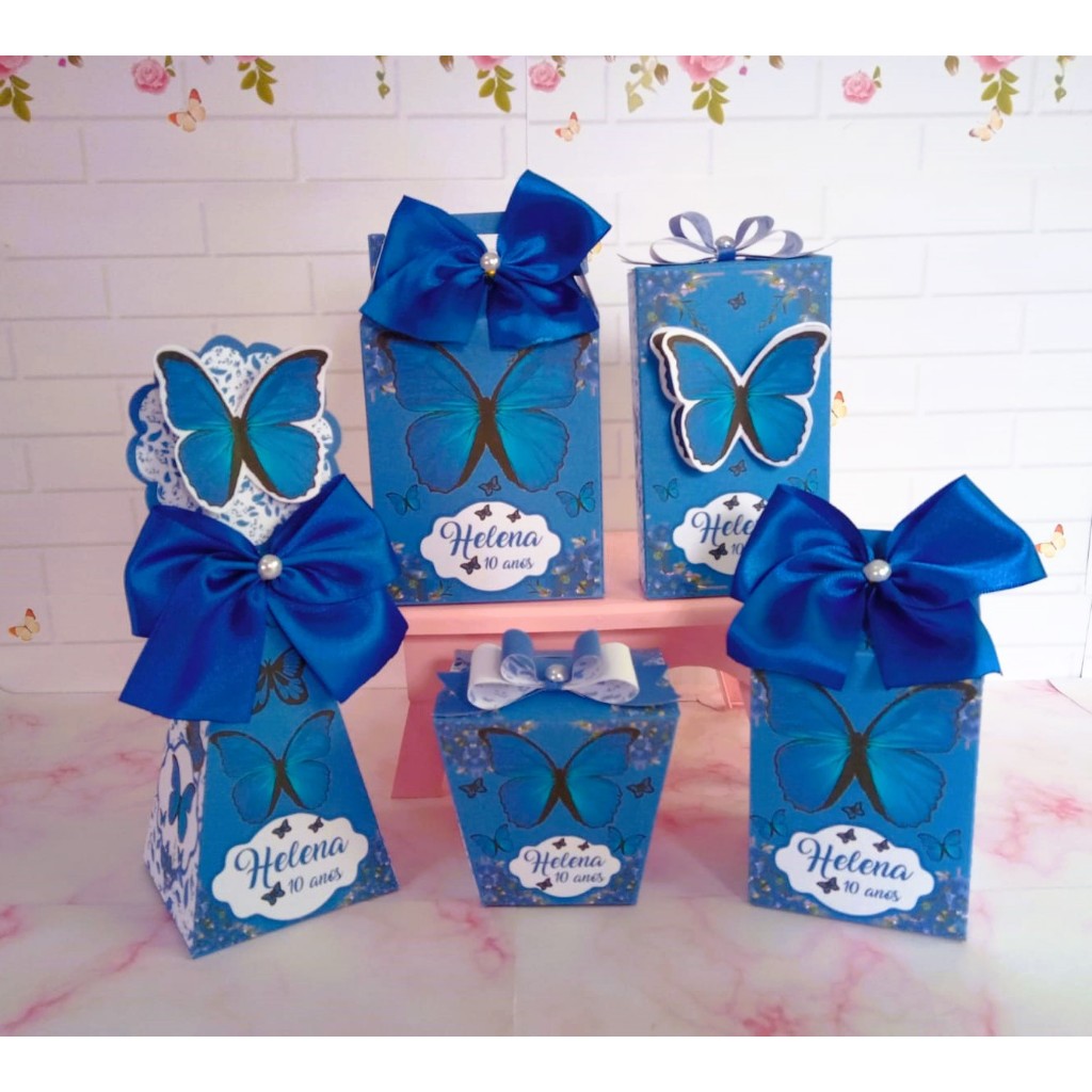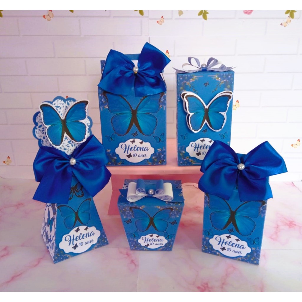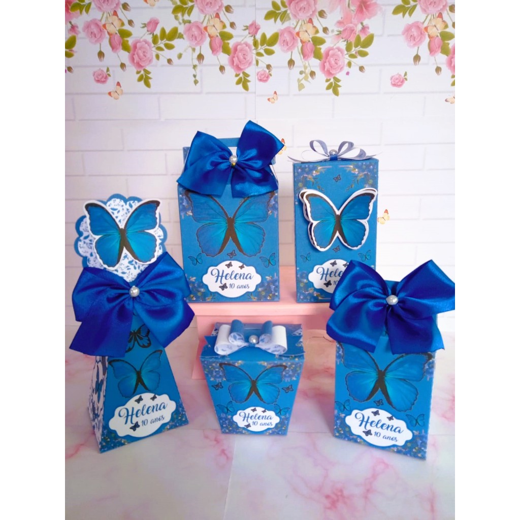 kit Festa Caixinhas Personalizadas Borboleta Azul Lembrancinhas para Festa