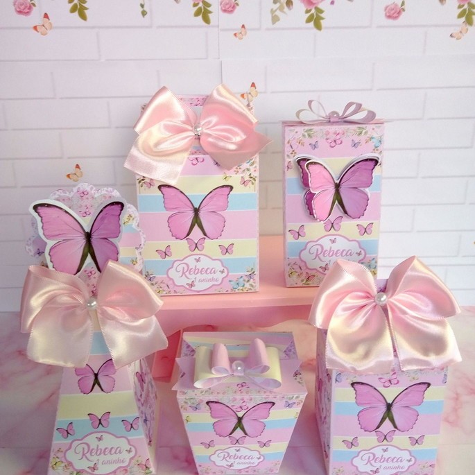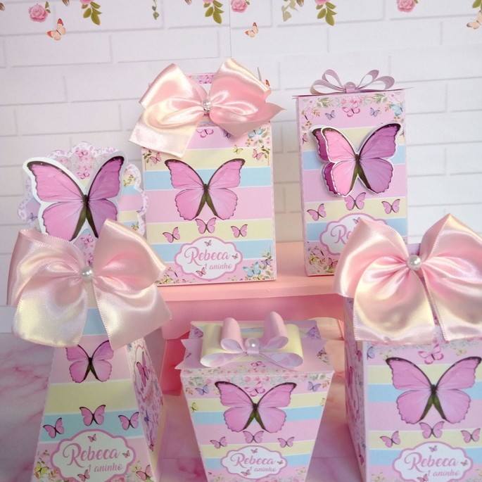 kit Festa Caixinhas Personalizadas Borboleta Candy Color Lembrancinhas para Festa