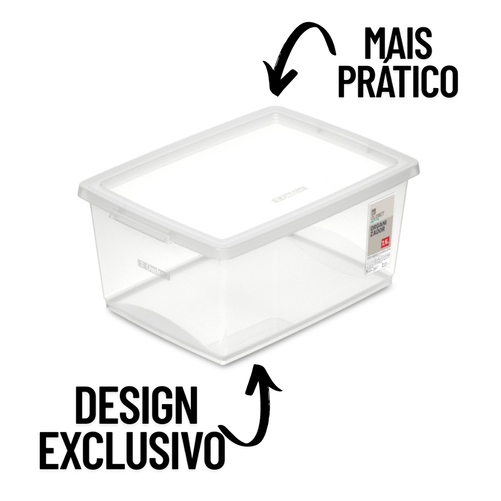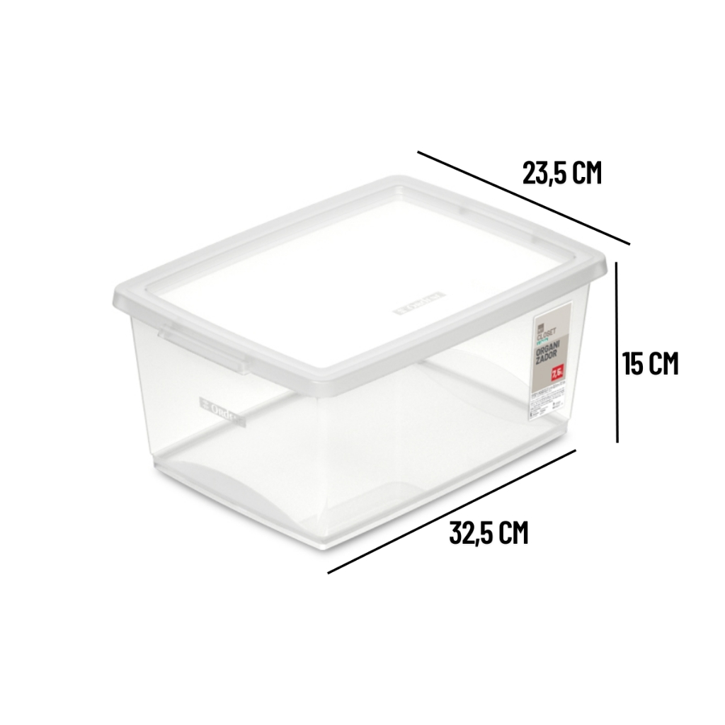 5 Caixa Organizadora Com Tampa Plástico Cristal Ordene 7,5l