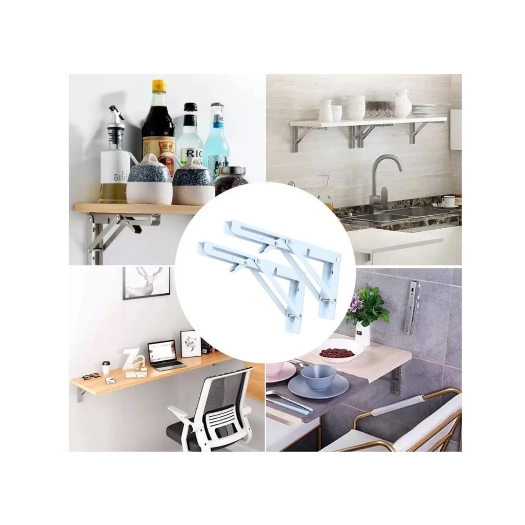 Kit 2 Suportes Mão Francesa Cantoneira Dobrável Retrátil Reforçada Prateleira Mesa 20/25/30/35cm