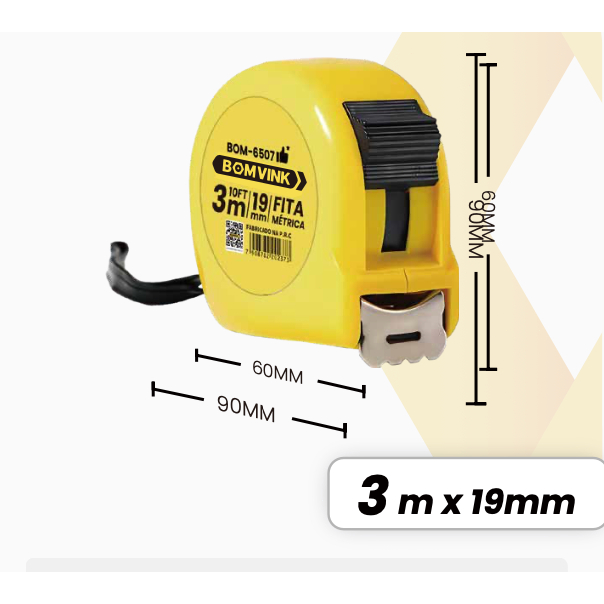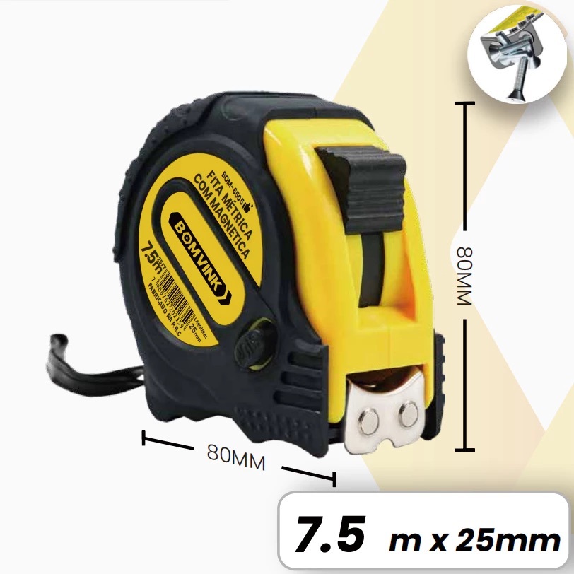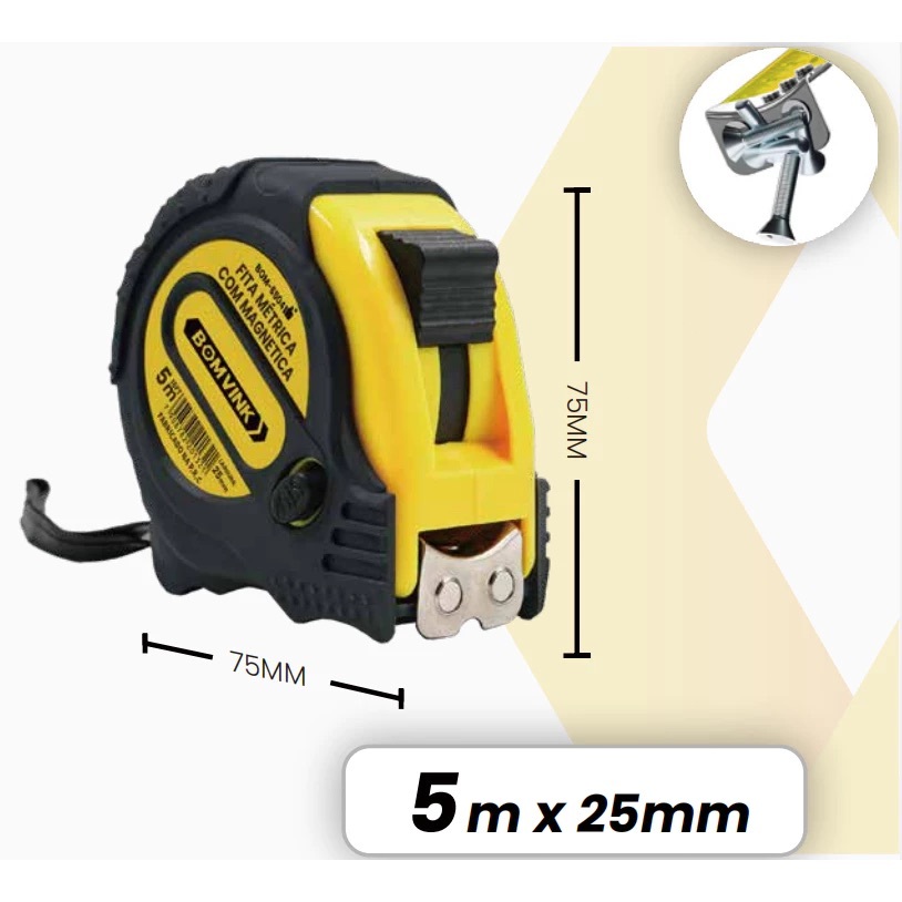 Trena Métrica 3/5/7.5/10 metros Profissional Emborrachada com Trava Fita de Aço