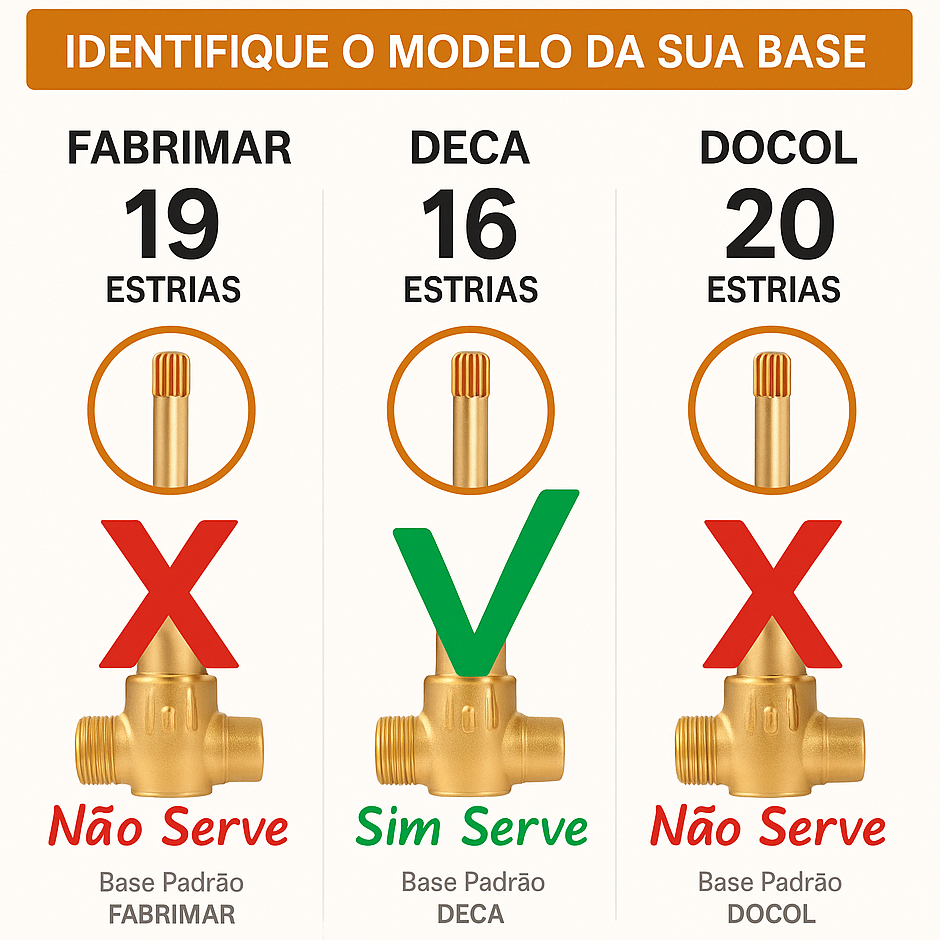 Acabamento Registro Deca 16 estrias Quadrado para Banheiro em Metal 1/2 3/4 Dourado Gold