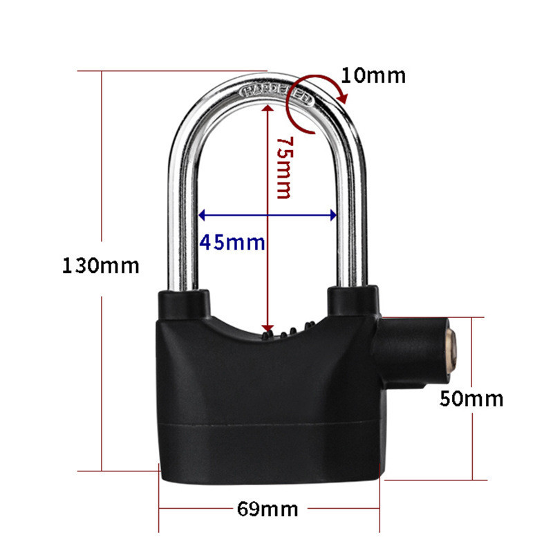 Cadeado antifurto para motocicleta com alarme sonoro