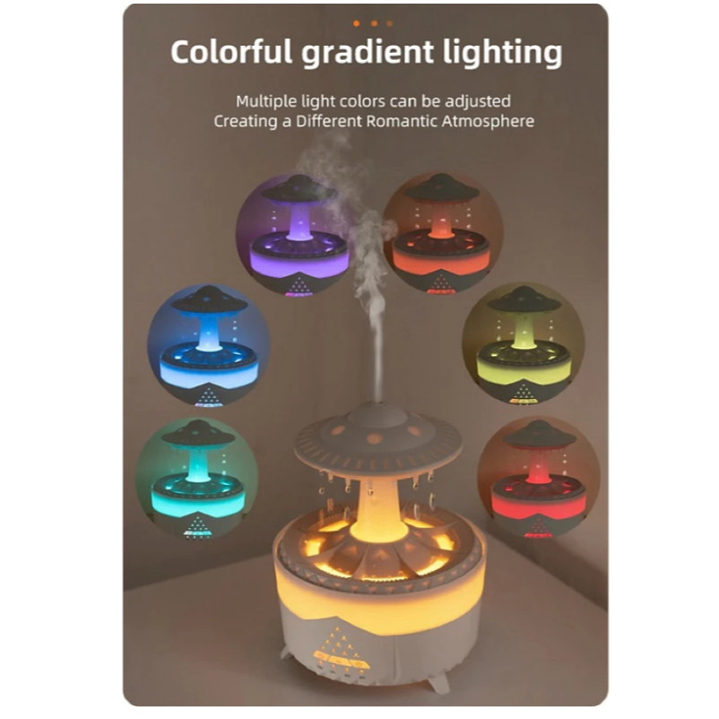 Umidificador Difusor De Aroma De design Nuvem e Chuva 7 Cores Luz Noturna Doméstica