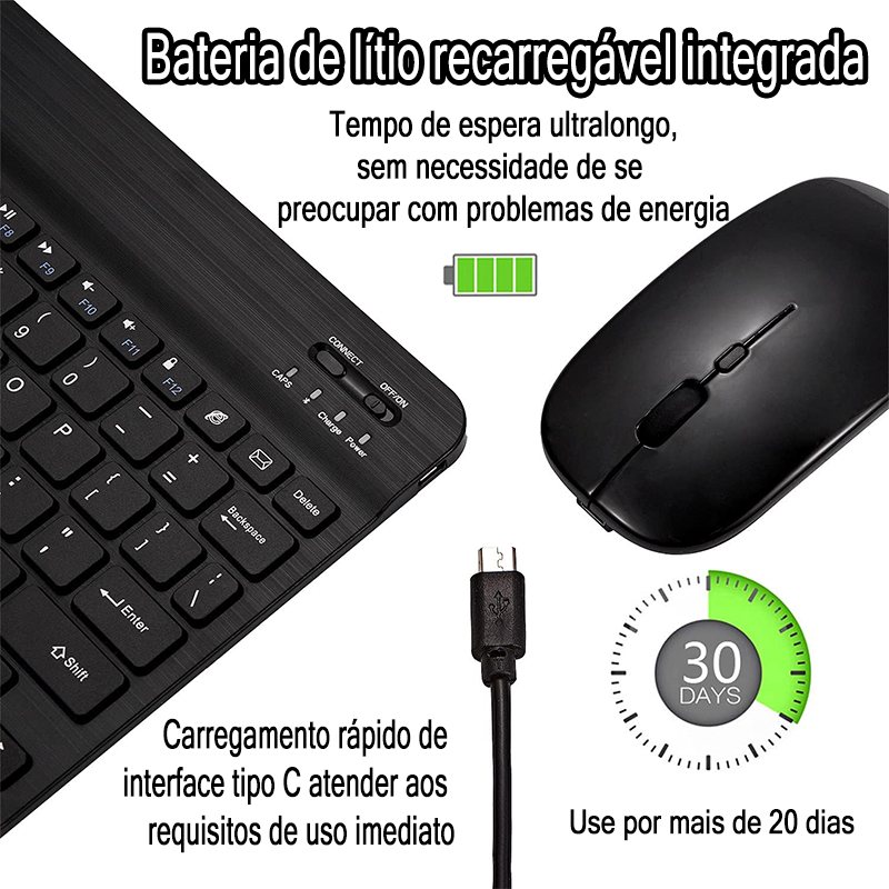 Capa Para Tablet Xiaomi Redmi Pad Se (11") / Redmi Pad 2 Com Teclado Bluetooth Abnt2 (Com Tecla "Ç") E Mouse Sem Fio
