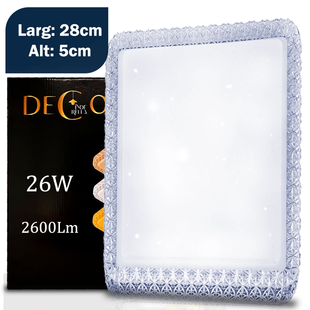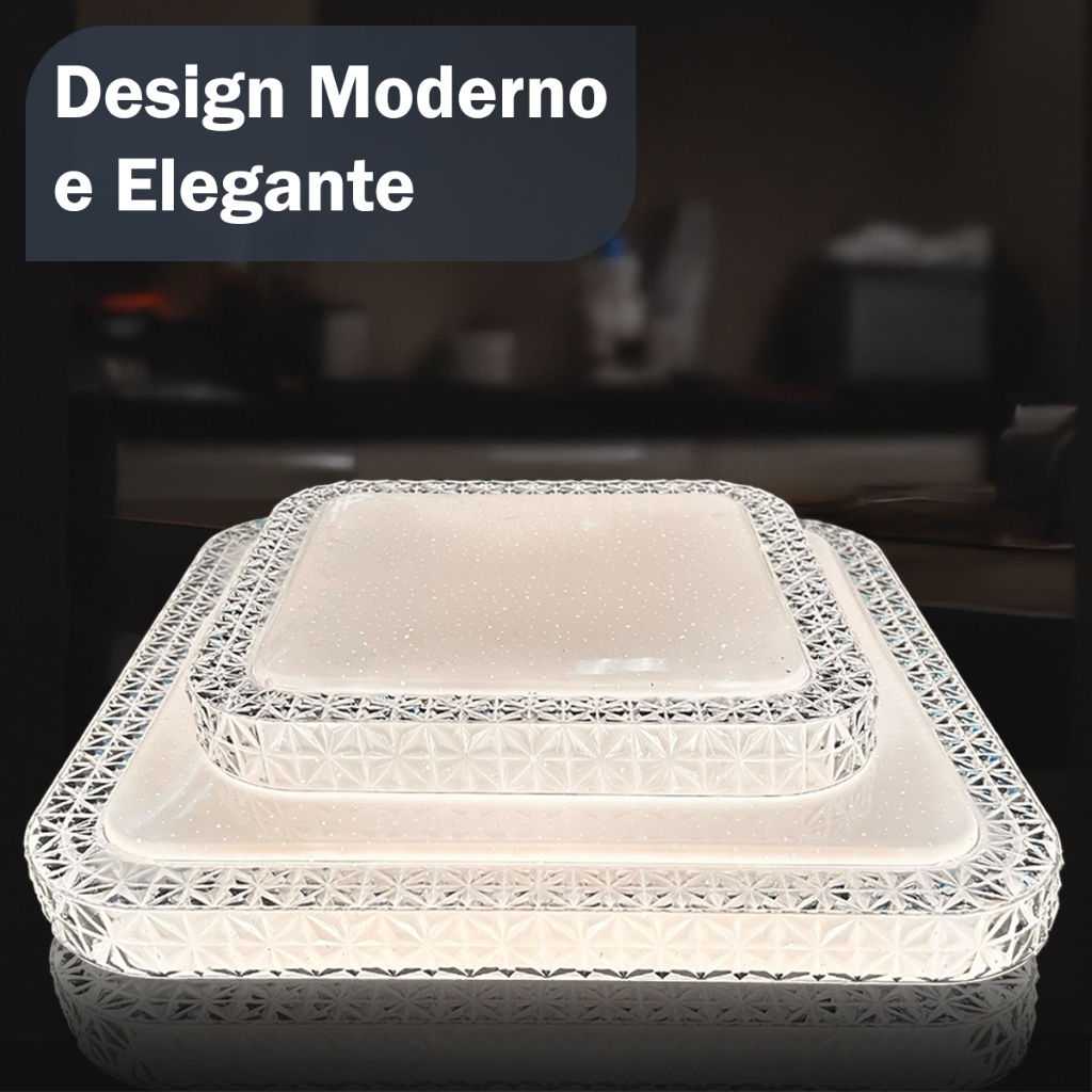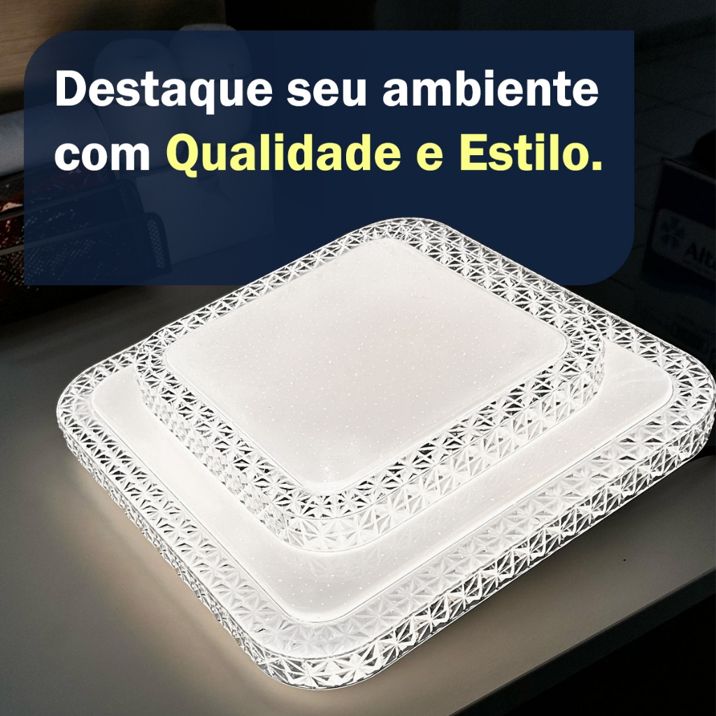 Luminária Teto Plafon Led Sobrepor Efeito Cristal Céu Estrelado Brilhante 3 Cores Bivolt Borda Infinita
