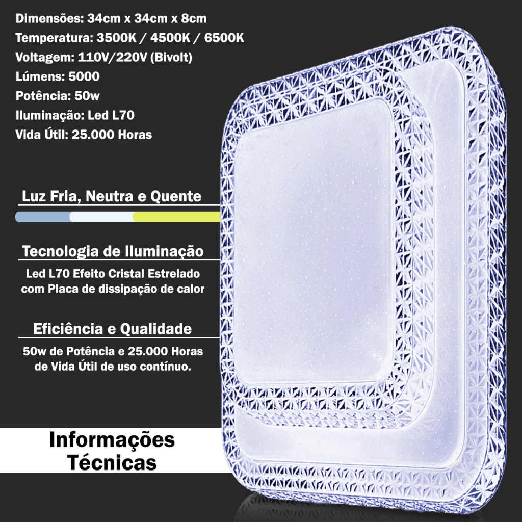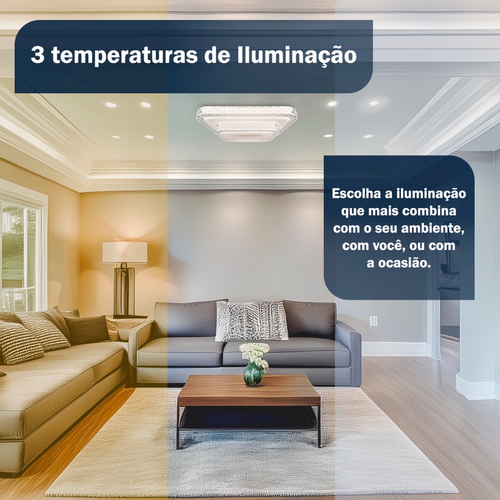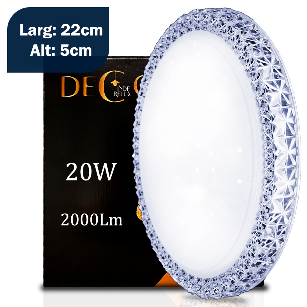 Luminária Teto Plafon Led Sobrepor Efeito Cristal Céu Estrelado Brilhante 3 Cores Bivolt Borda Infinita