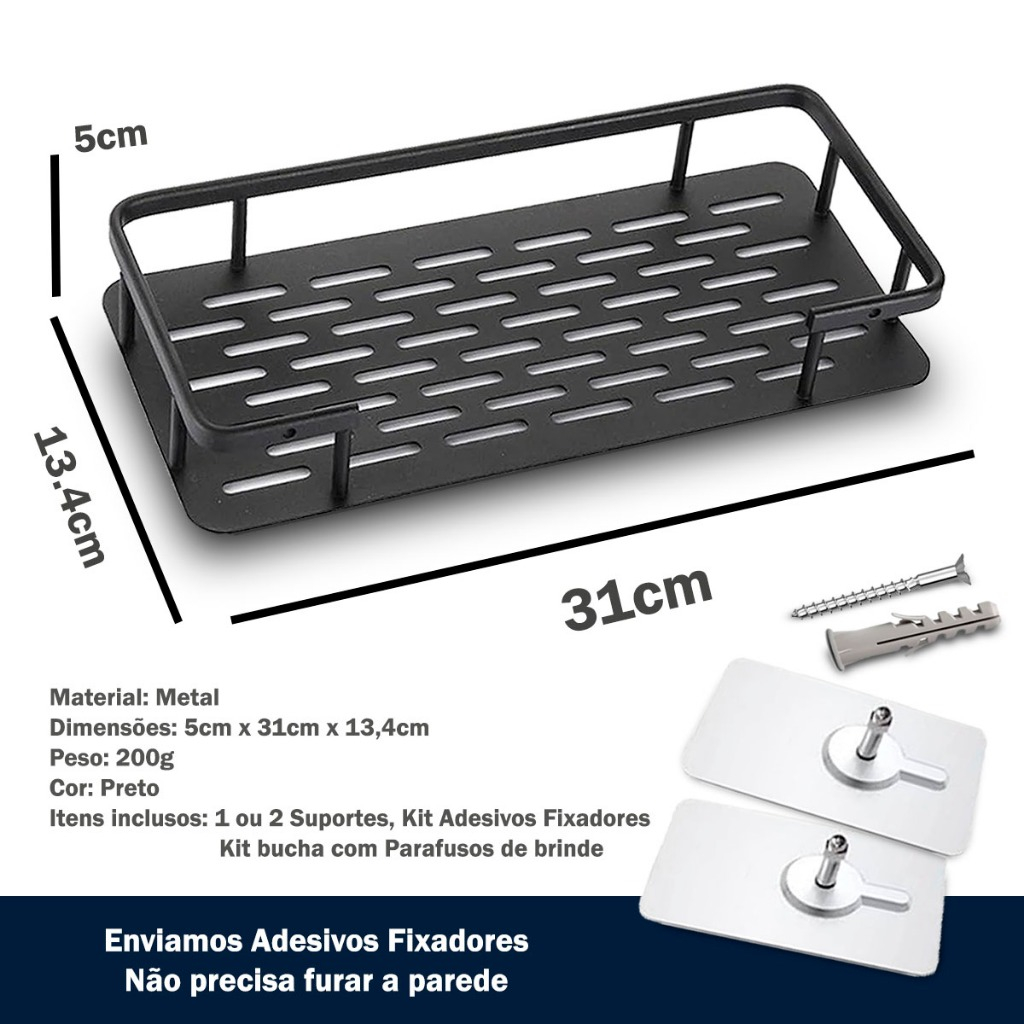 Suporte Porta Shampoo Prateleira Para Banheiro Organizador com Adesivo de Parede e Box Sem Furos