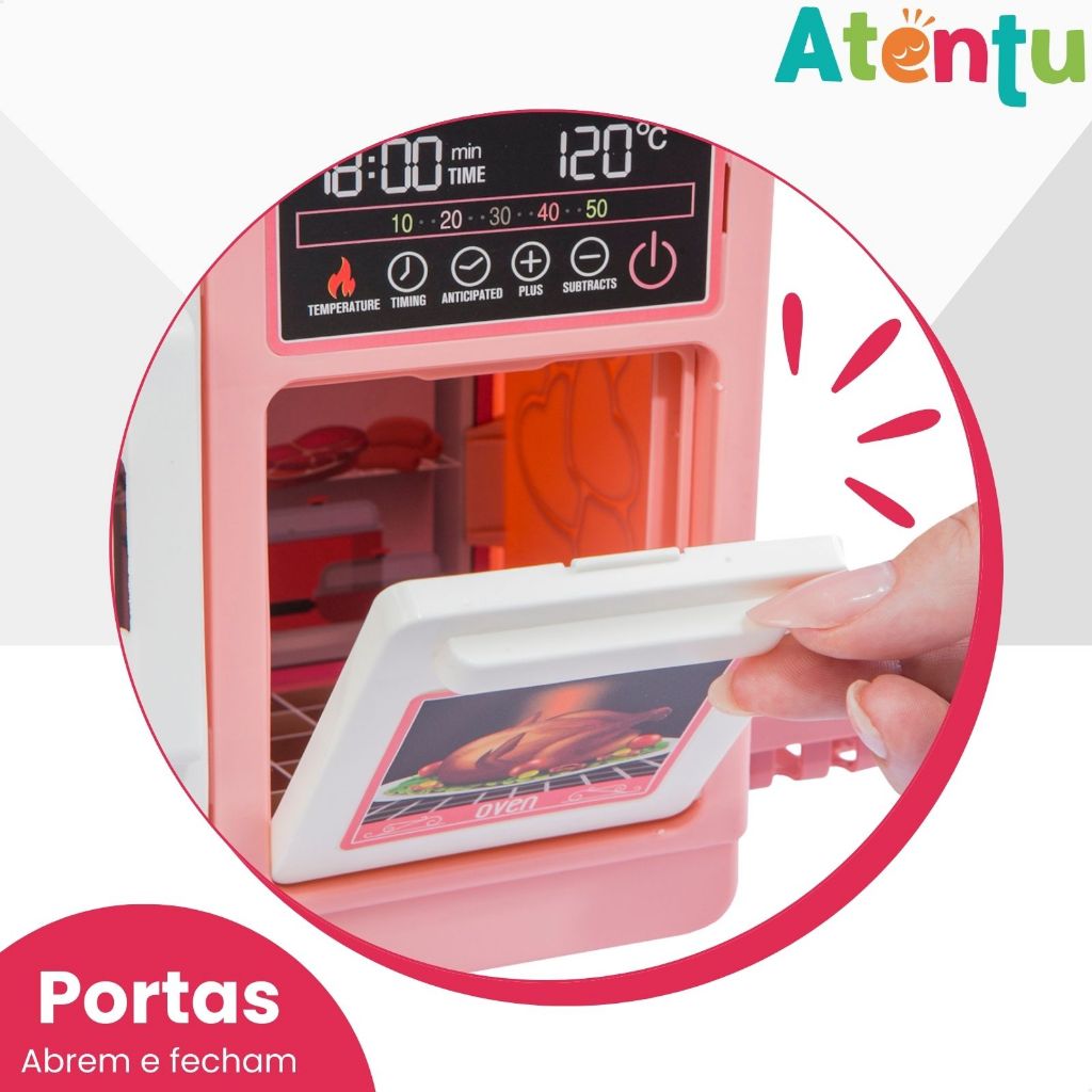 Kit Cozinha de Brinquedo Infantil Solta Água e Som Forno Pia Geladeira Panela