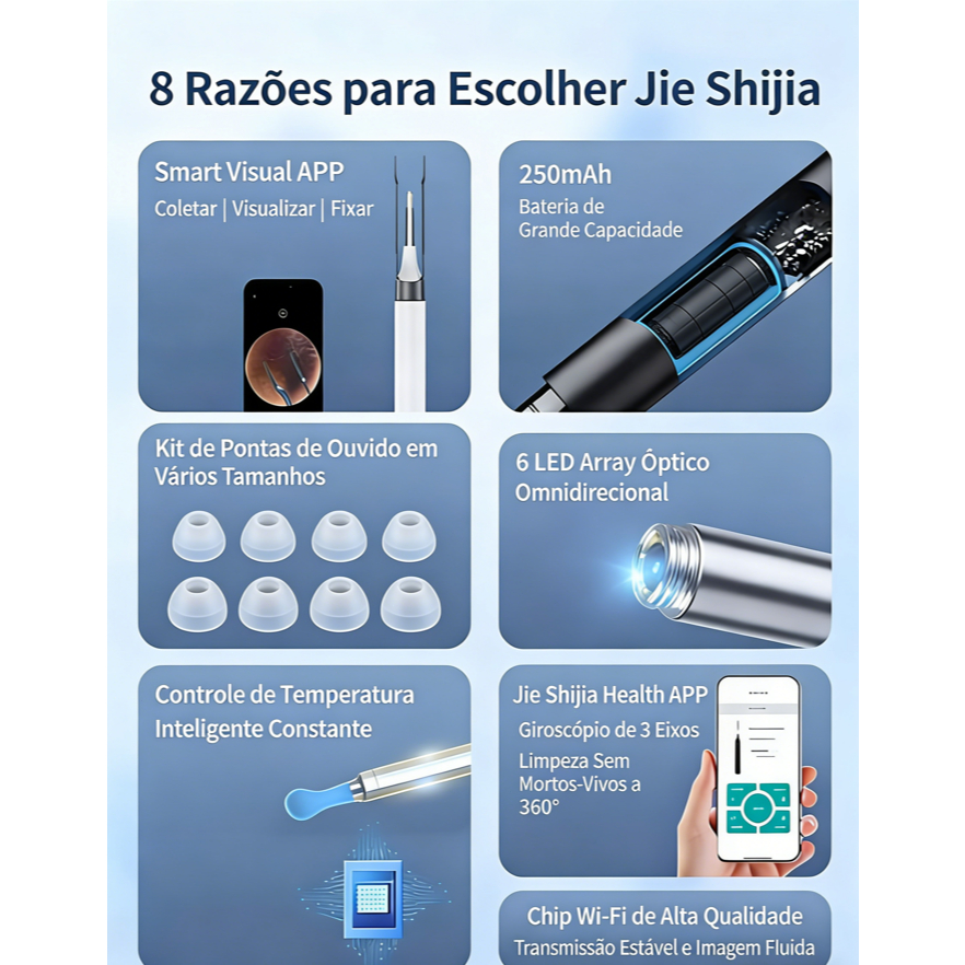 Limpador de Ouvido Otoscópio NE3 com Câmera Removedor de Cera Limpeza Wireless