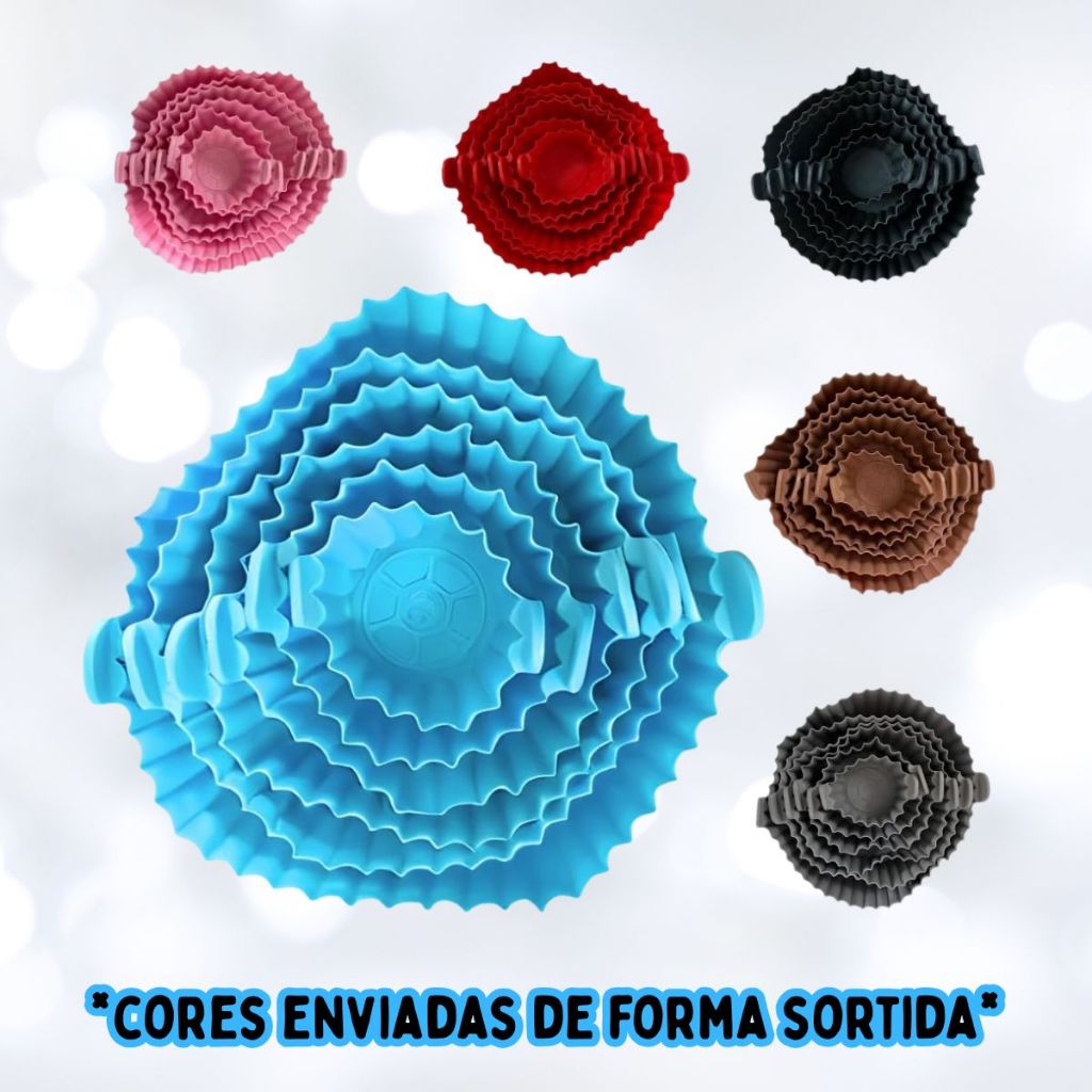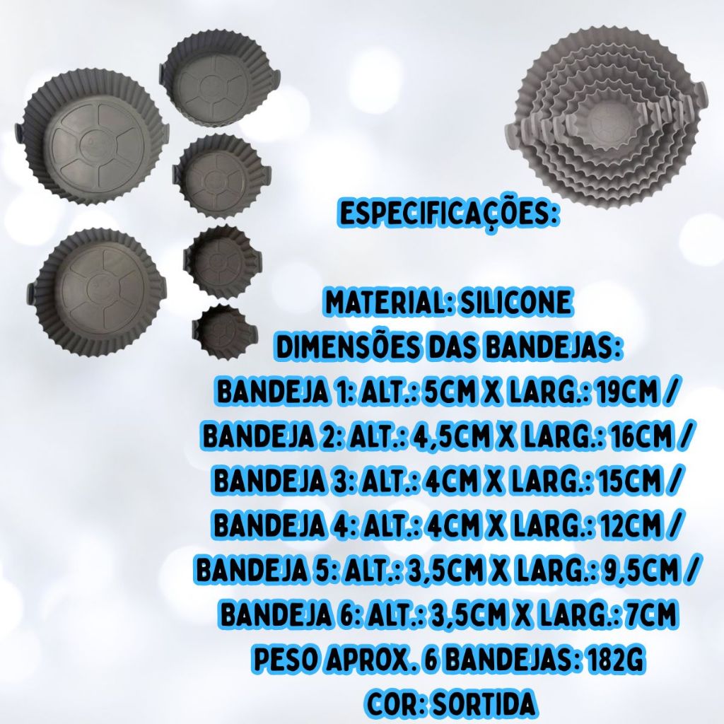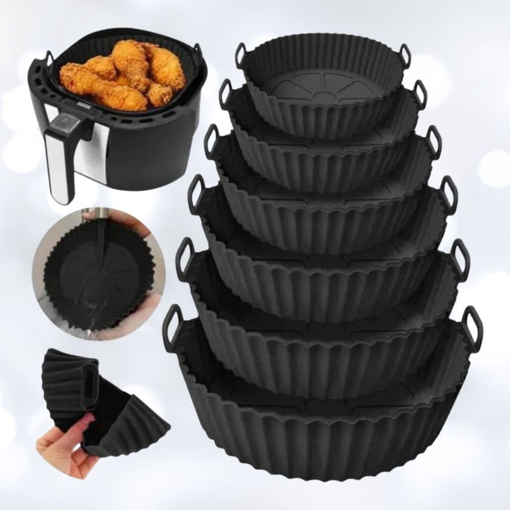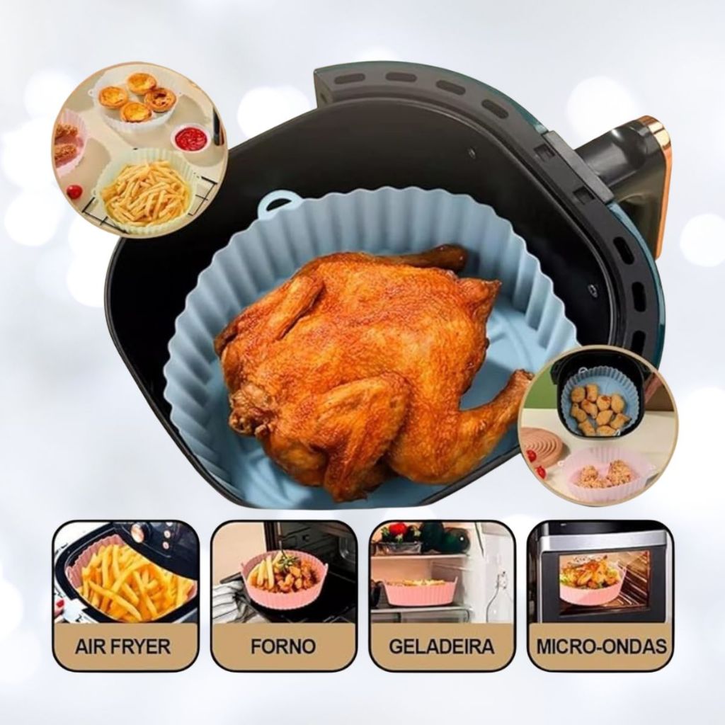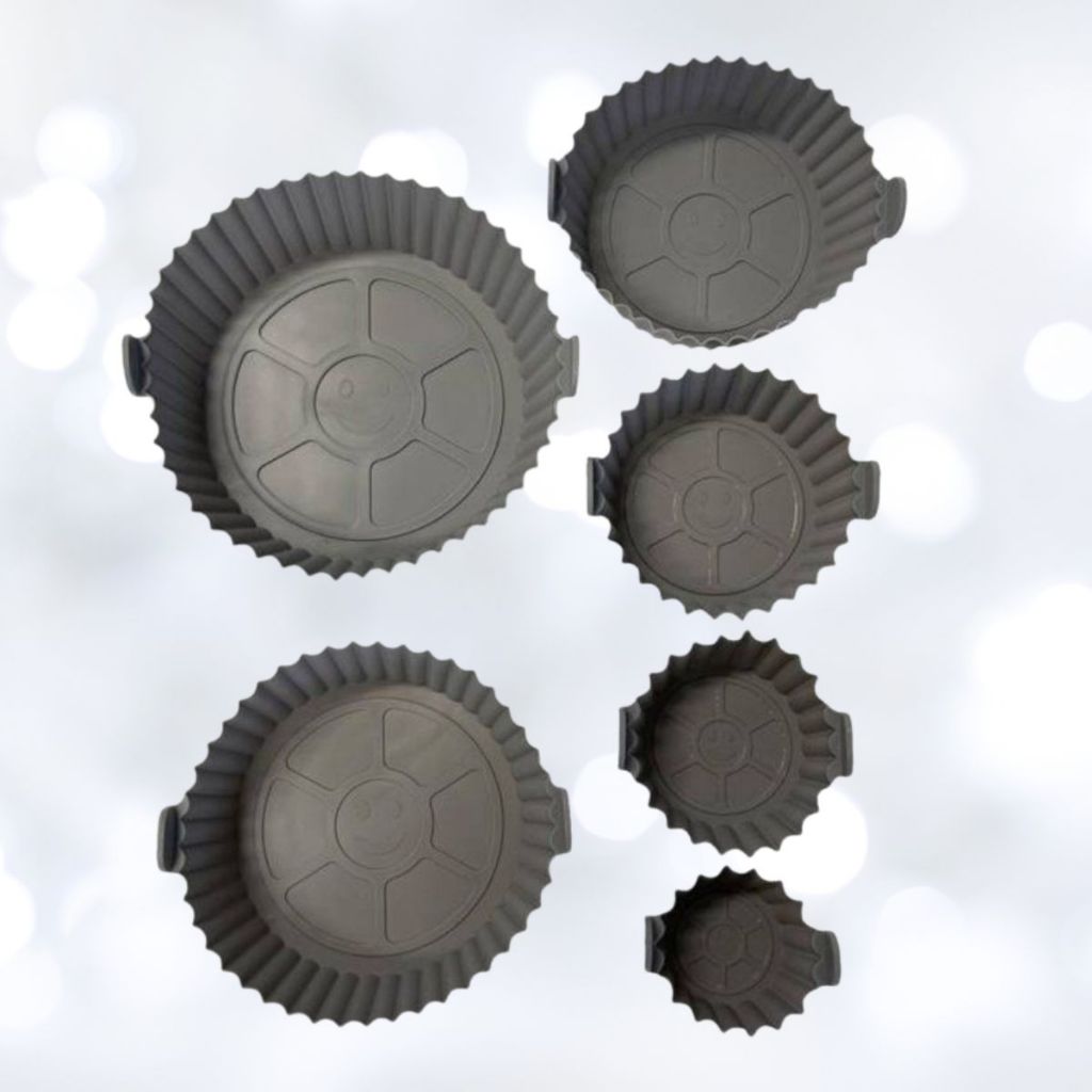 Kit Com 6 Formas Antiaderente Cesta Redonda de Silicone Para Air Fryer Fritadeira Universal C/ Alça Cor Sortida