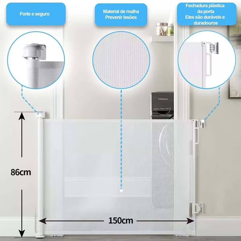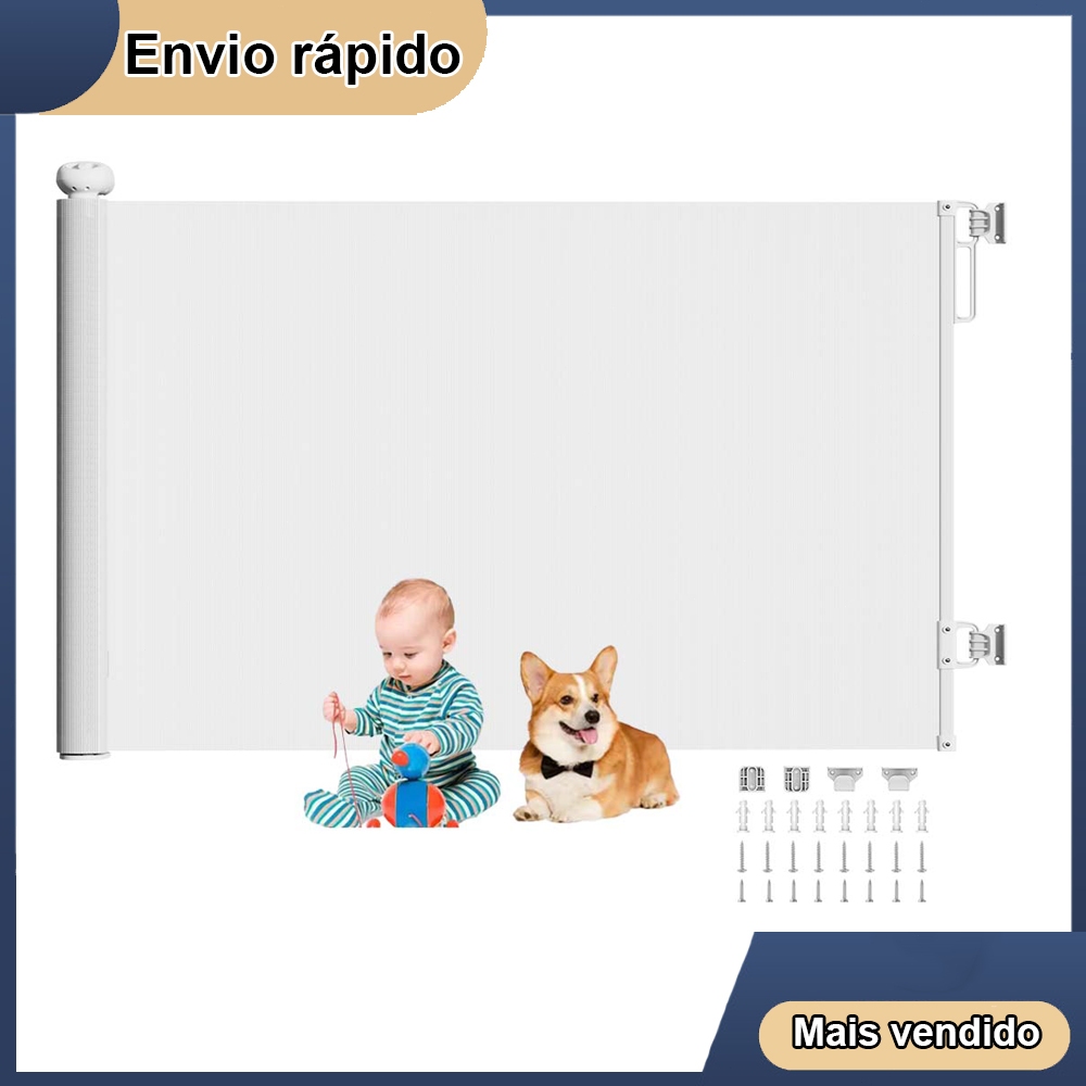 Portão retrátil branco para bebês com proteção de segurança dobrável para cães e crianças em escadas Isolamento