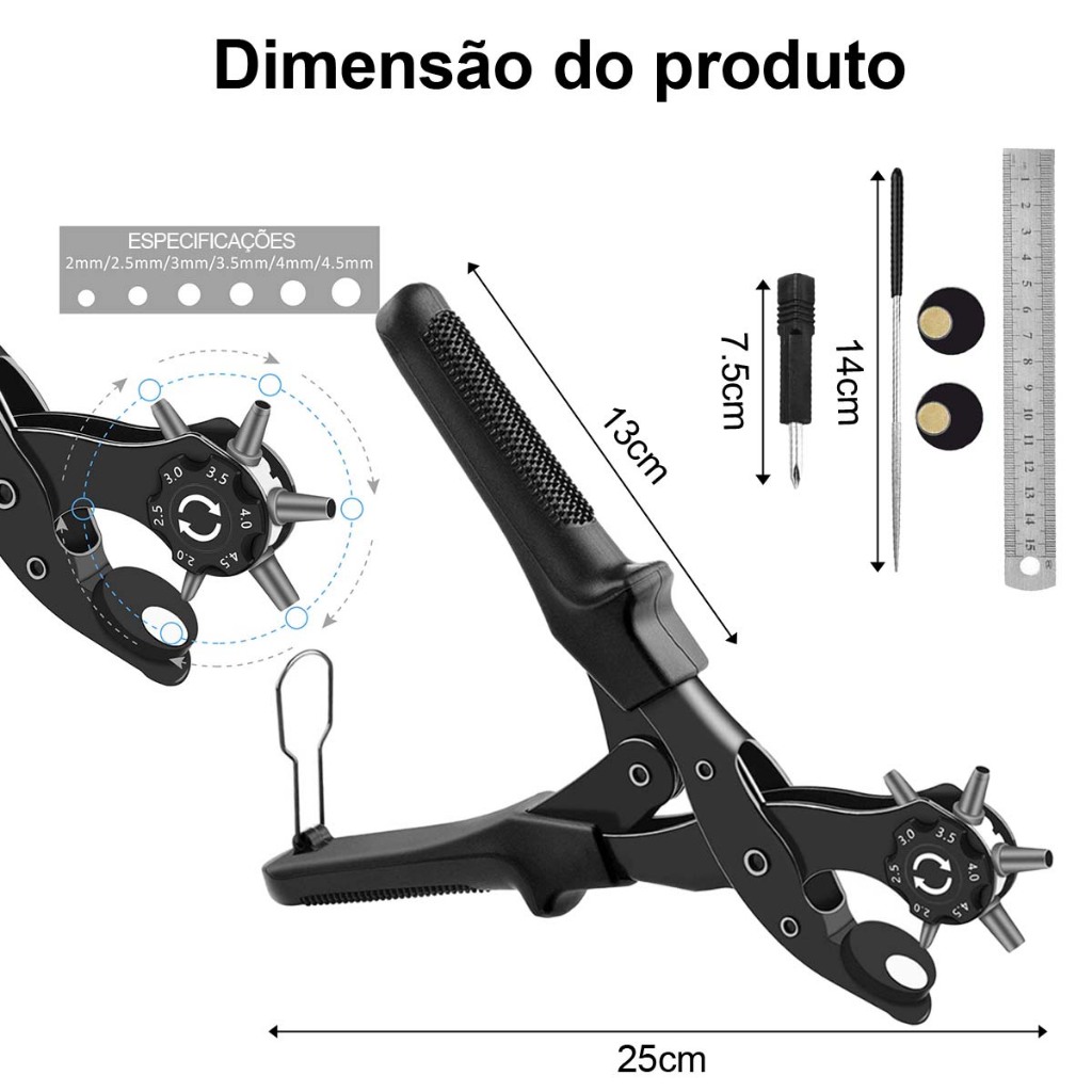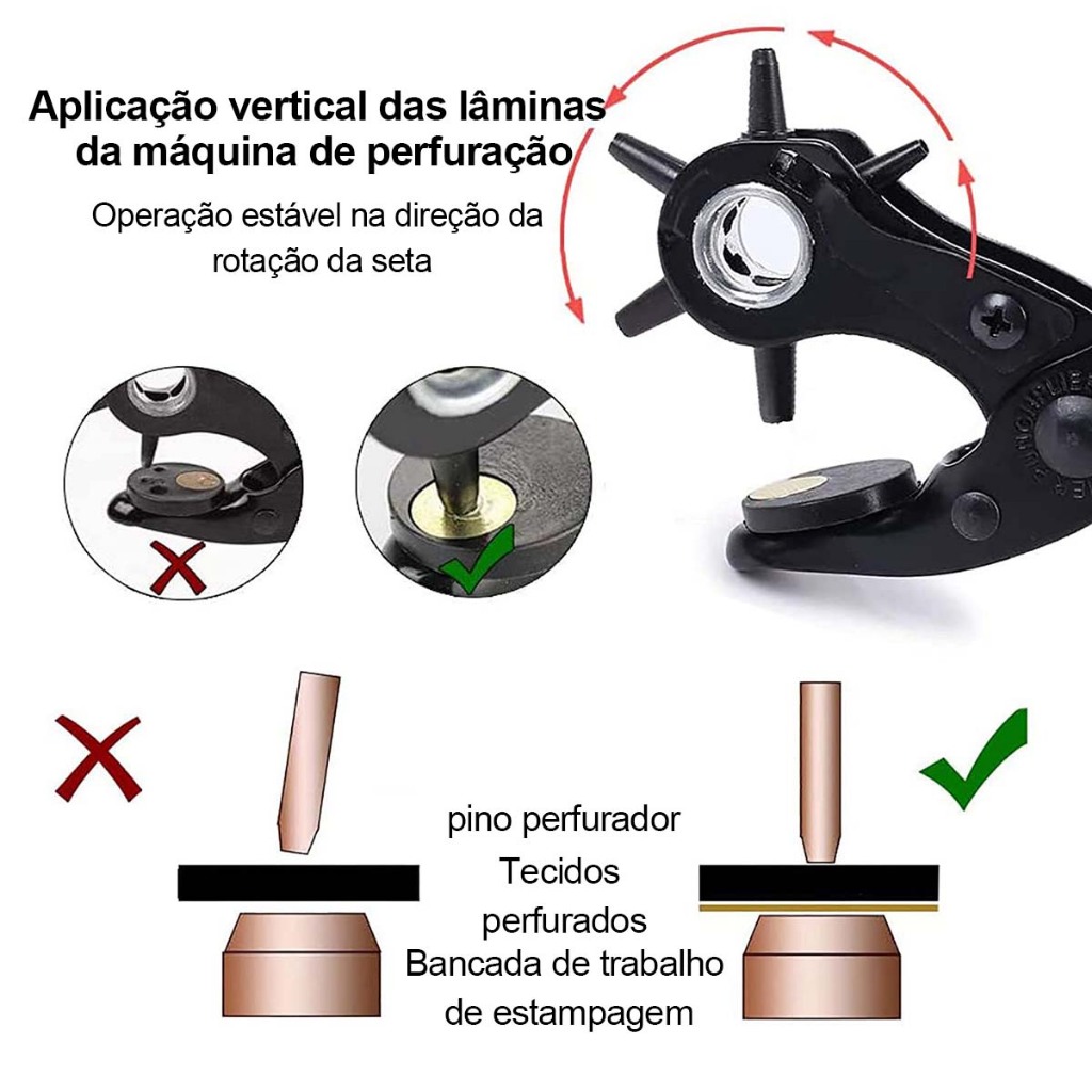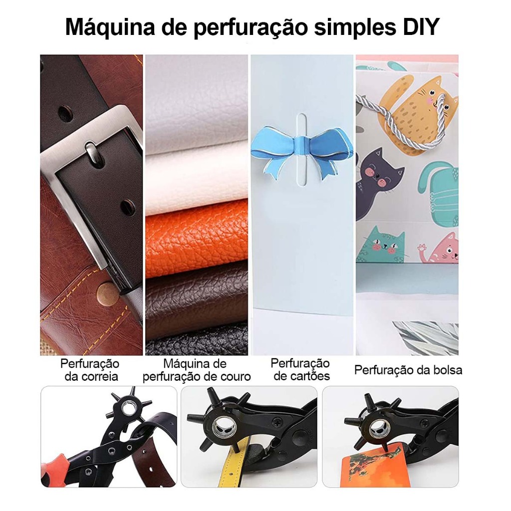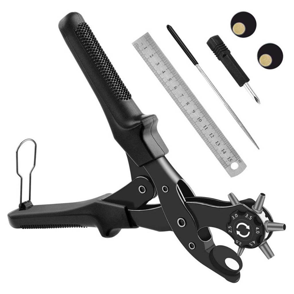 Furador de couro giratório Ferramenta de perfuração para cintos com corte de ilhós de 6 tamanhos