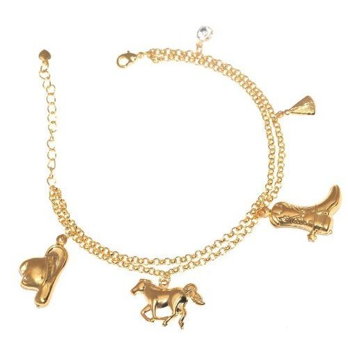 Pulseira Country Cavalo Chapéu Bota Folheado A Ouro 18k