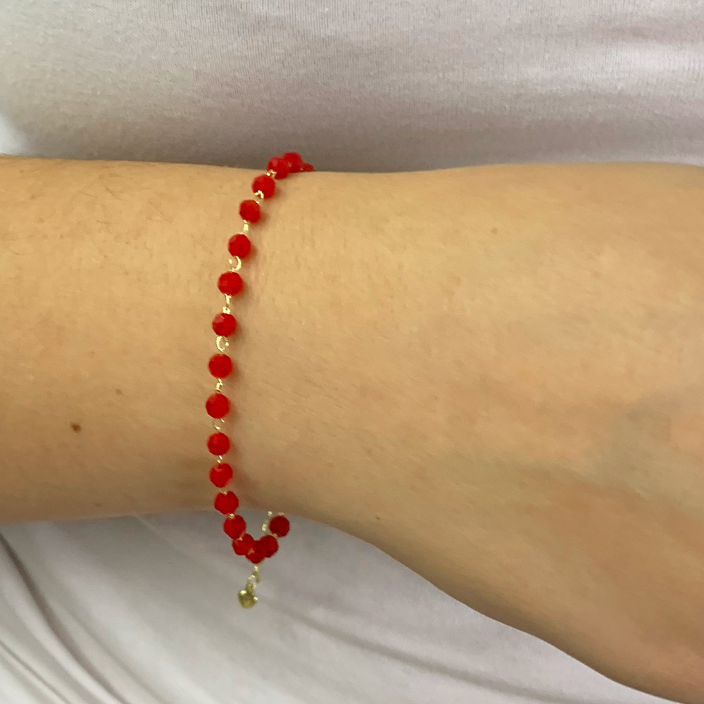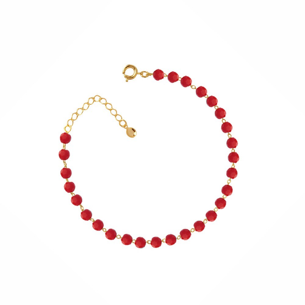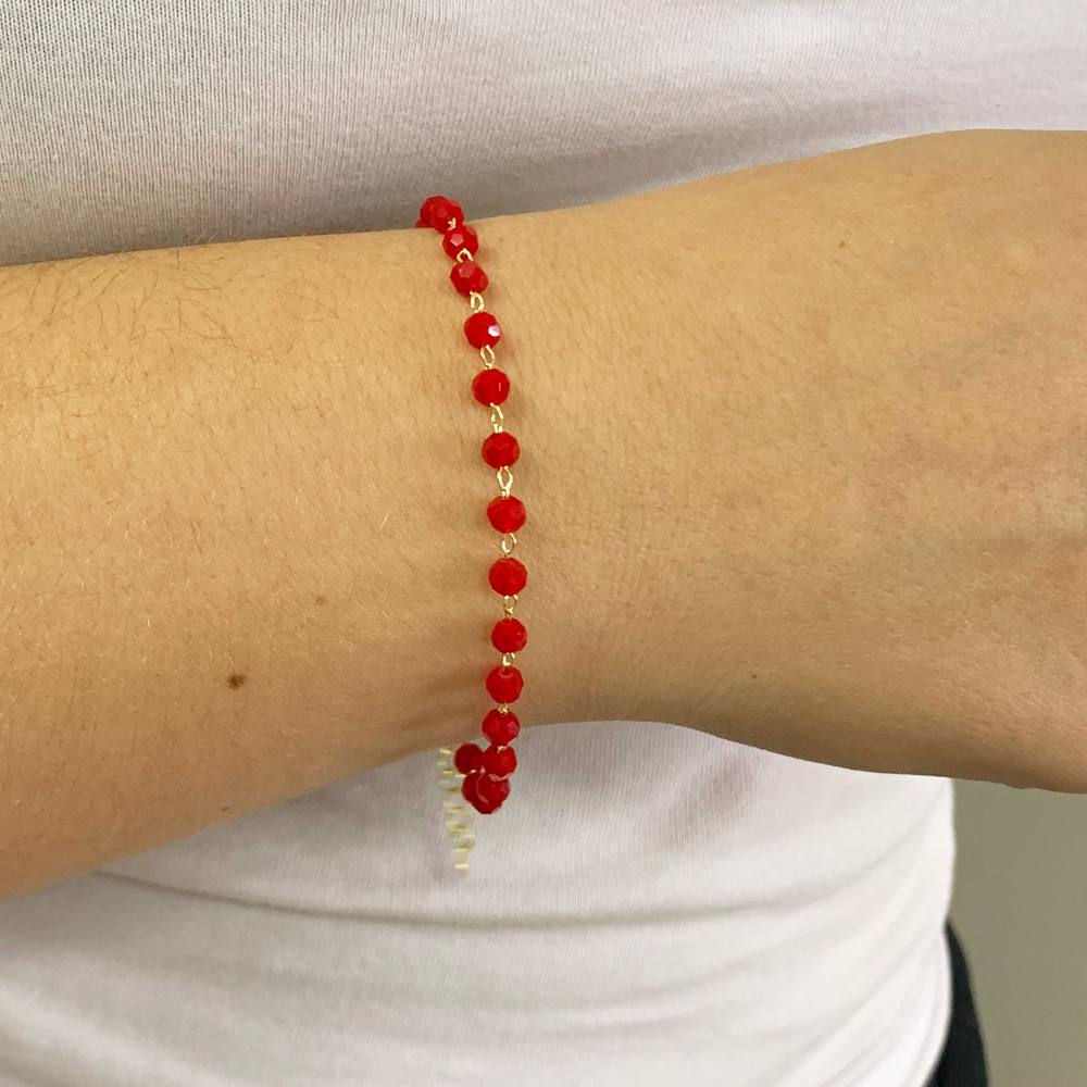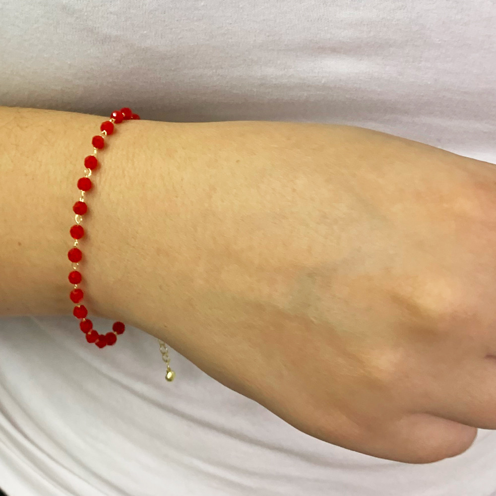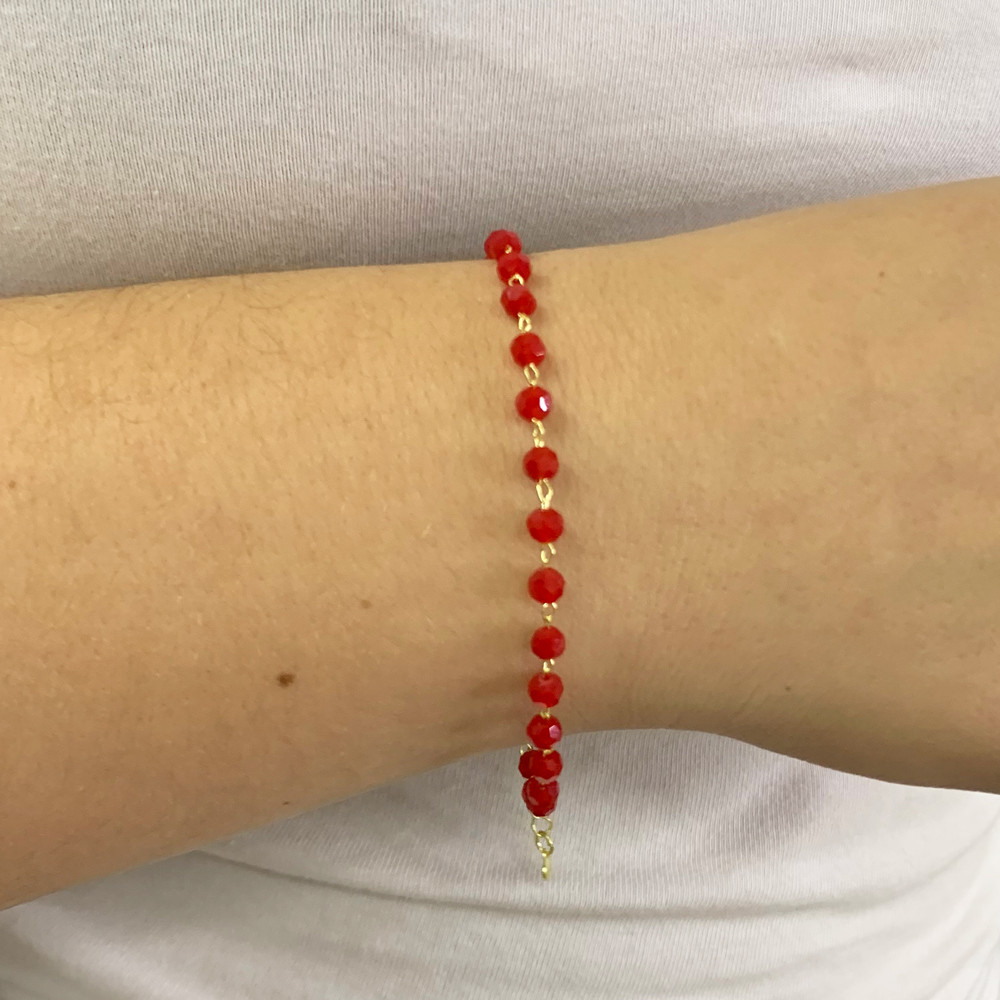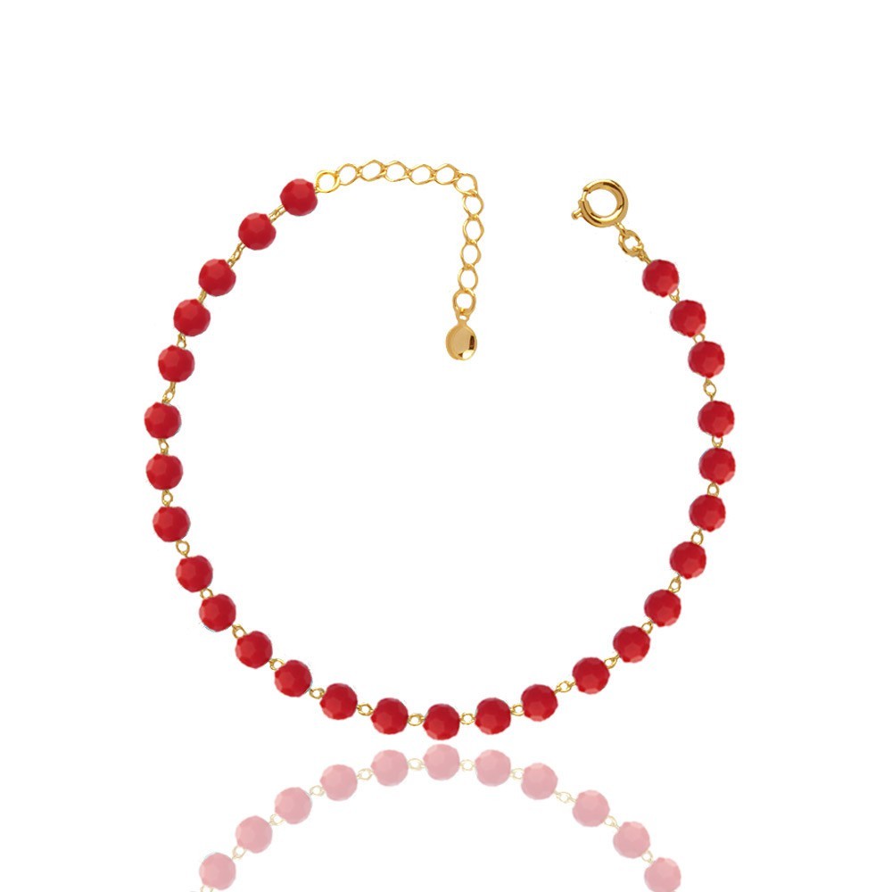 Pulseira Miçangas Vermelha Folheado A Ouro 18k