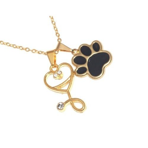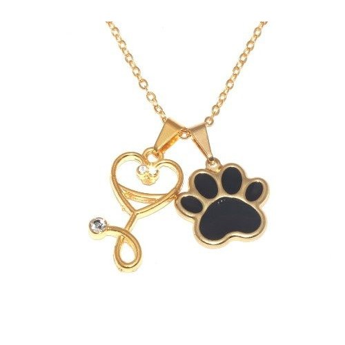Colar Veterinária Estetocópio Pata Folheada A Ouro 18k