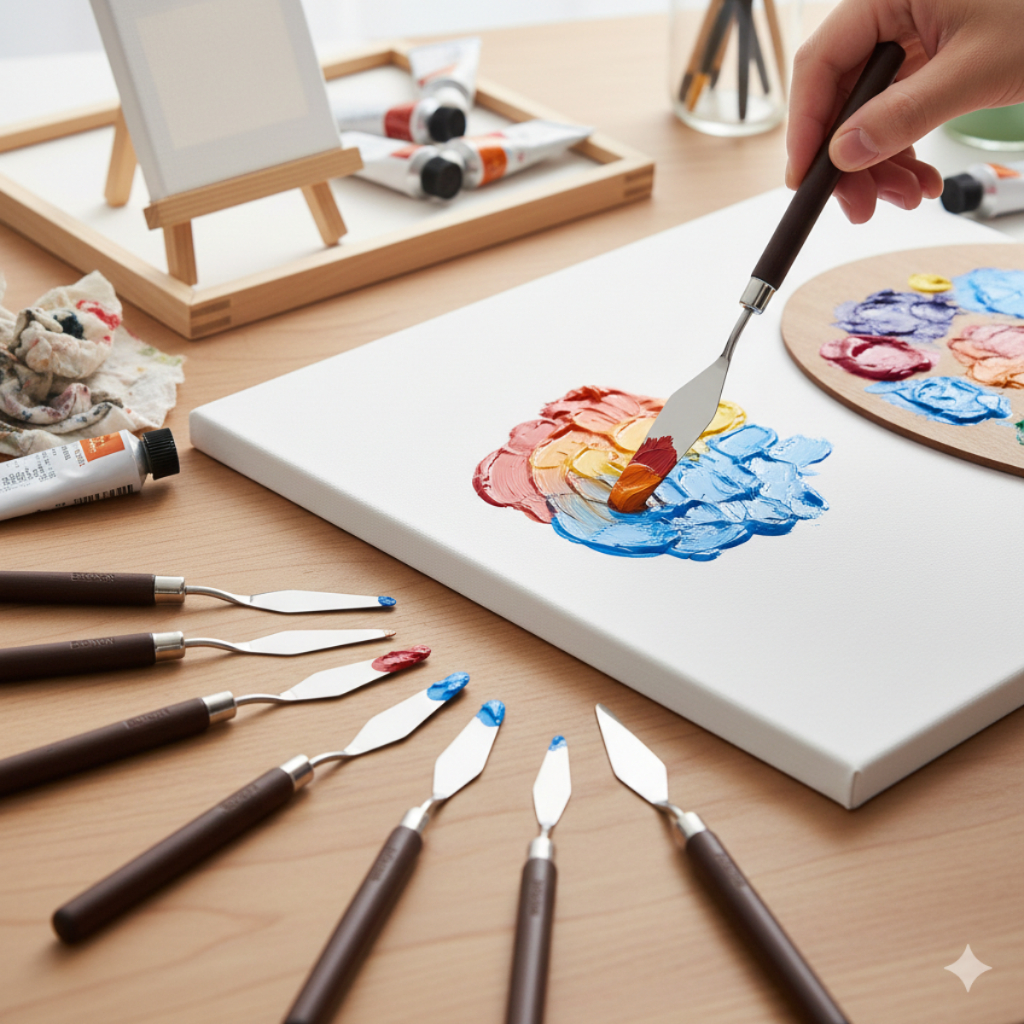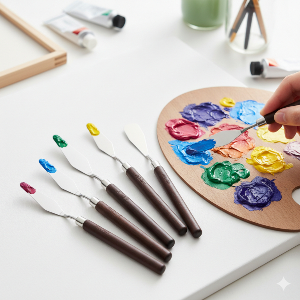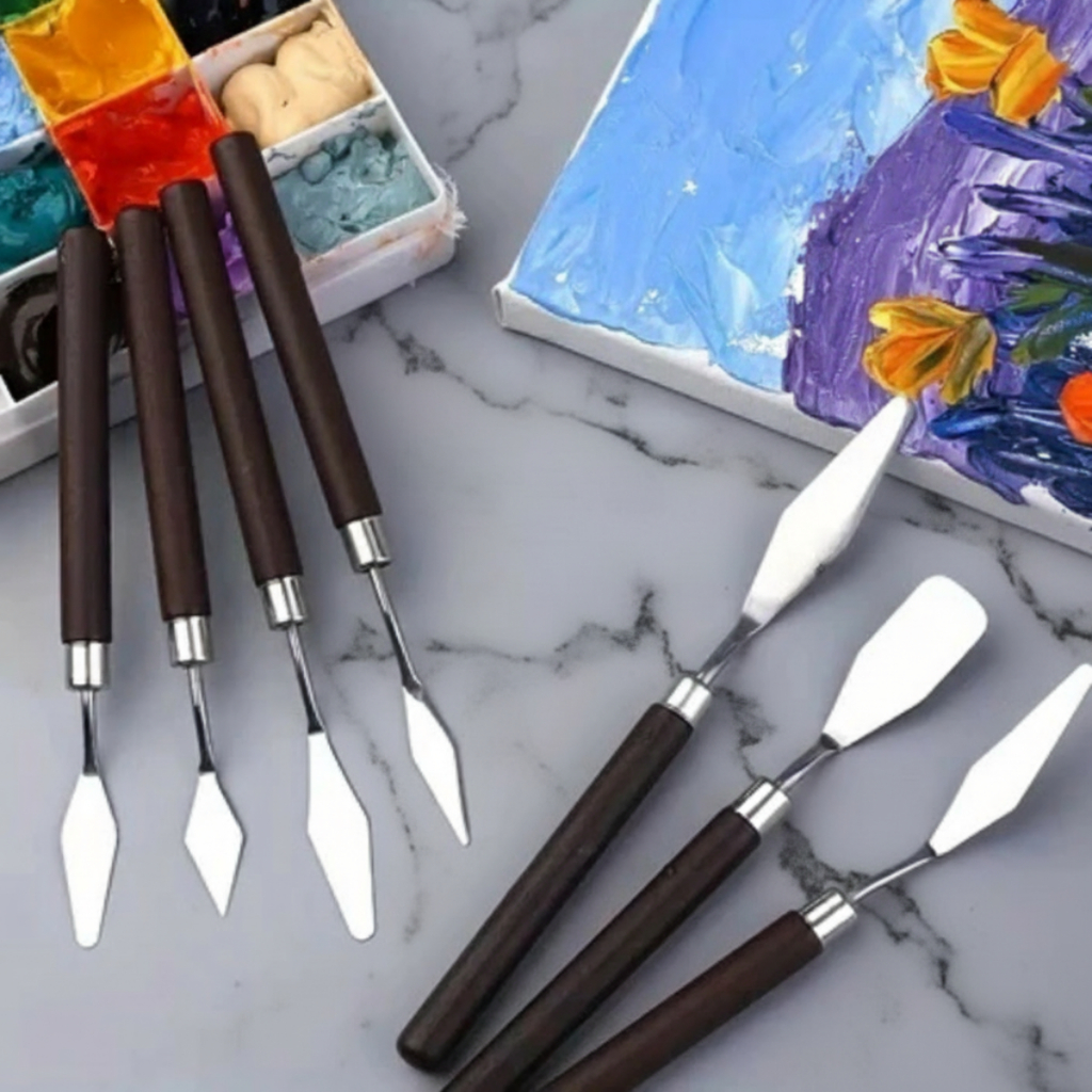 Conjunto com 7 facas de aço inoxidável para pintura a óleo, espátulas para artistas e ferramentas de desenho