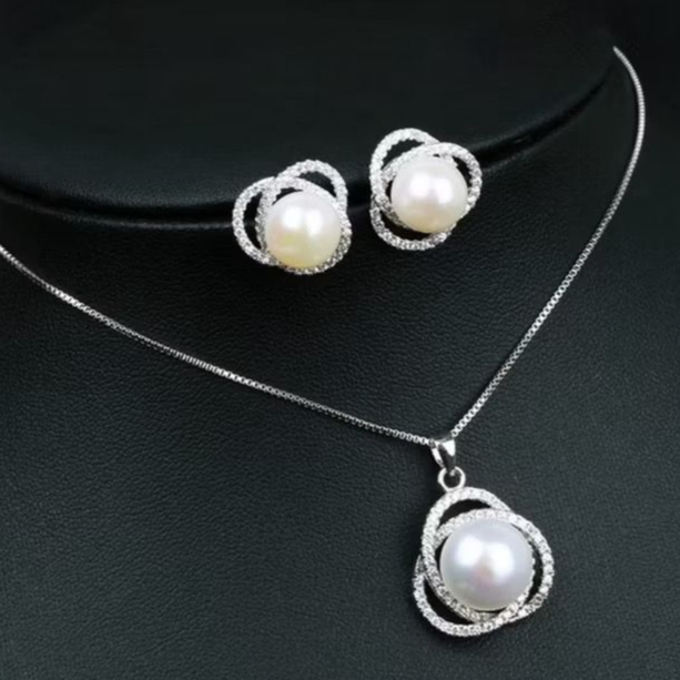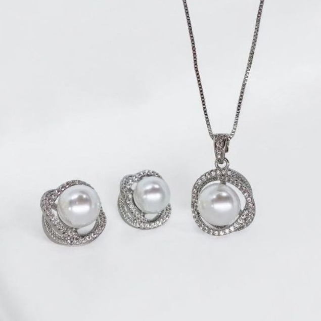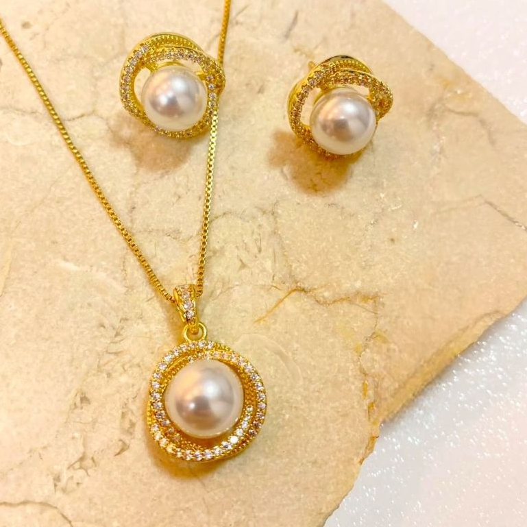 Colar e Brinco Feminino Perola Pra noiva Folheados Casamento Madrinhas Formatura BJ78