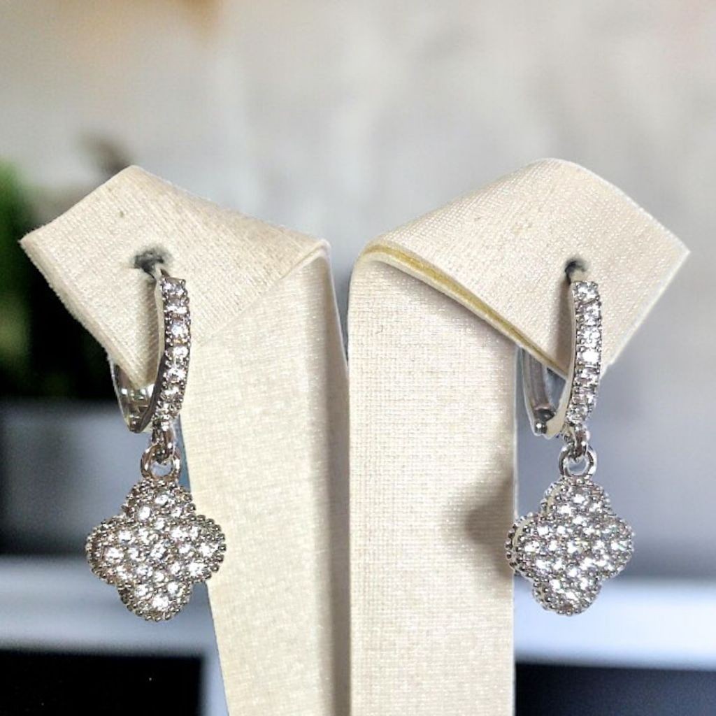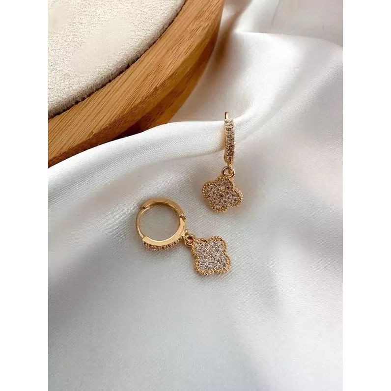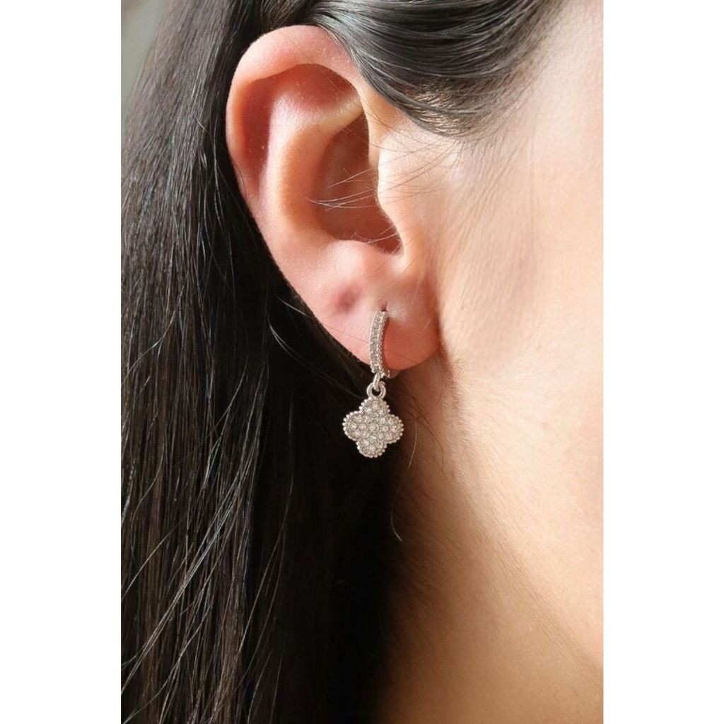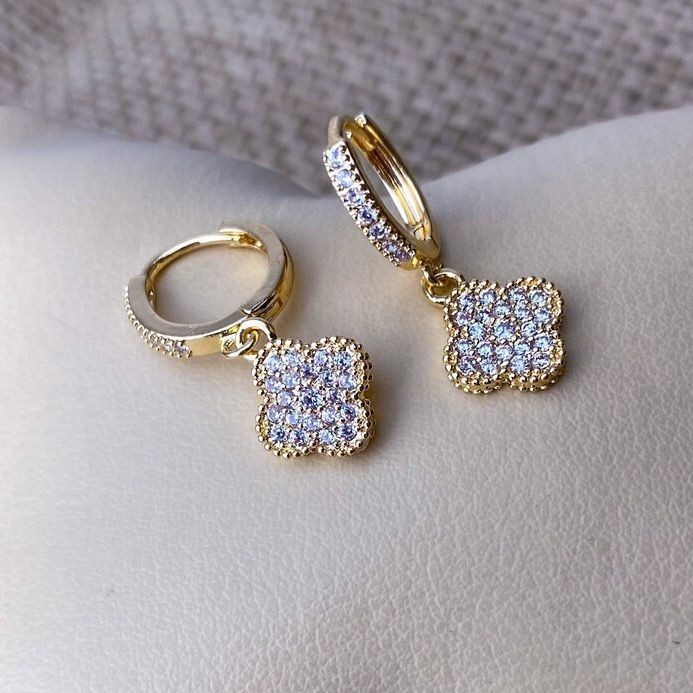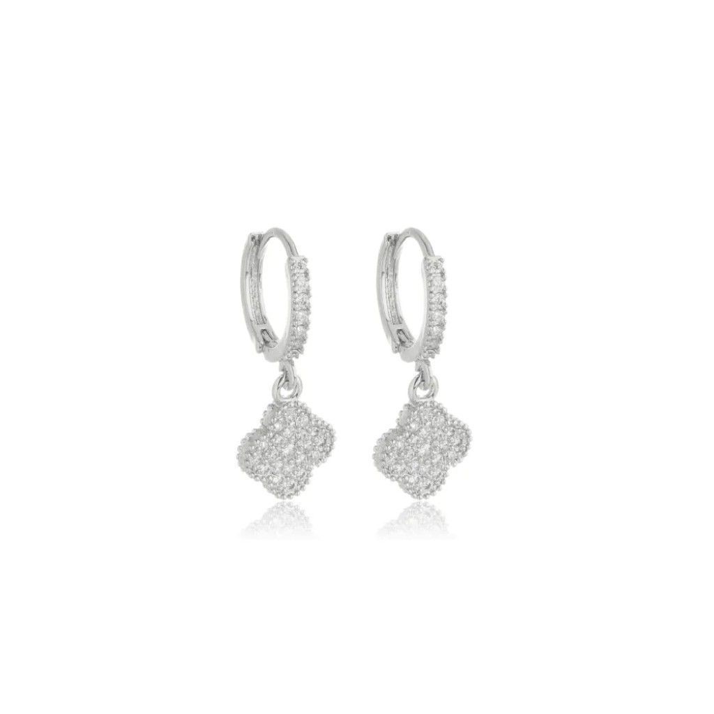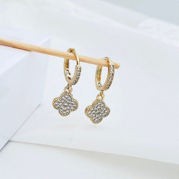 Brinco Feminino Argola Cravejada Trevo Folheado Moda Mulher BR43