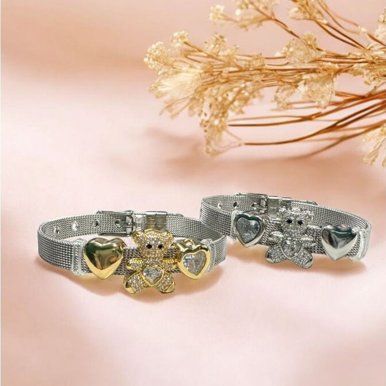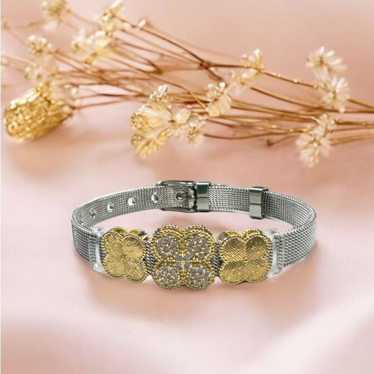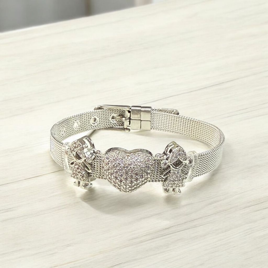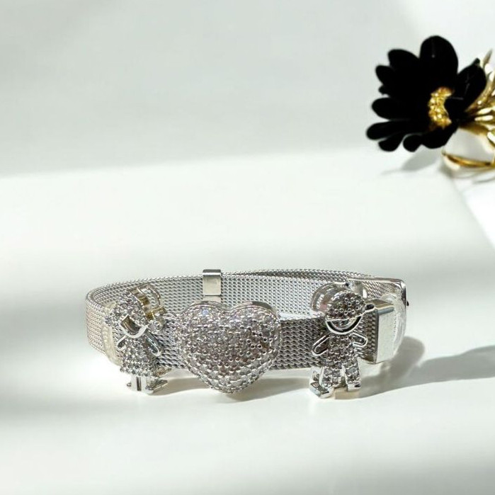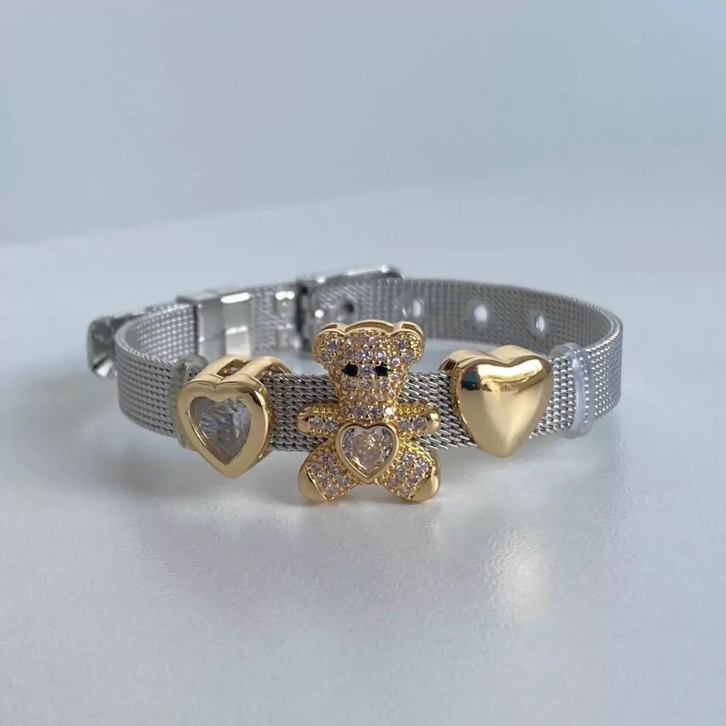 Pulseira malha Aço Feminina + 3 Charms Moda Mulher Elegante Pulseira Relógio