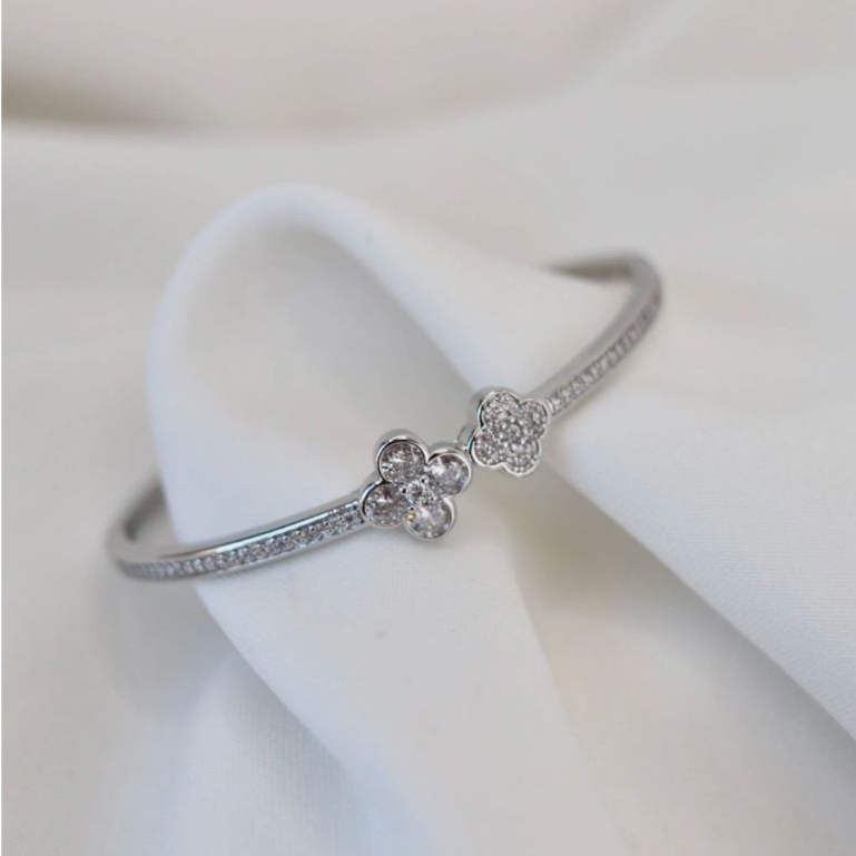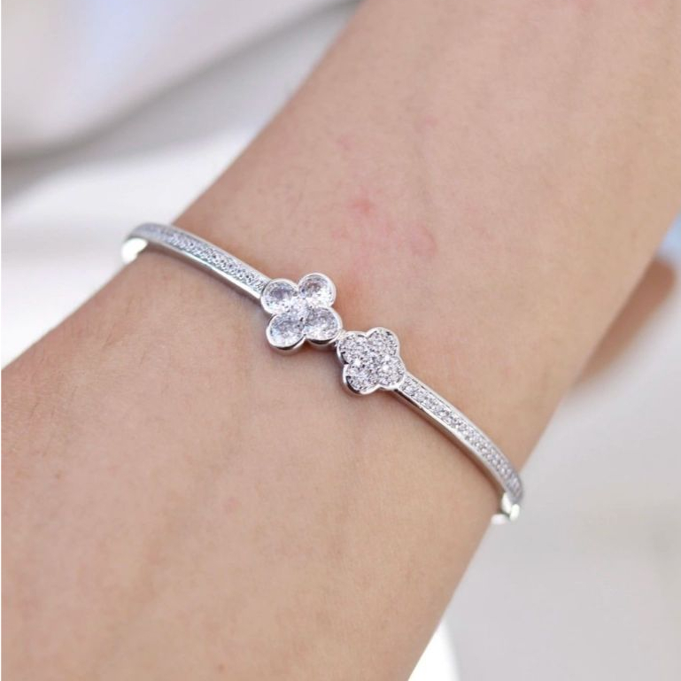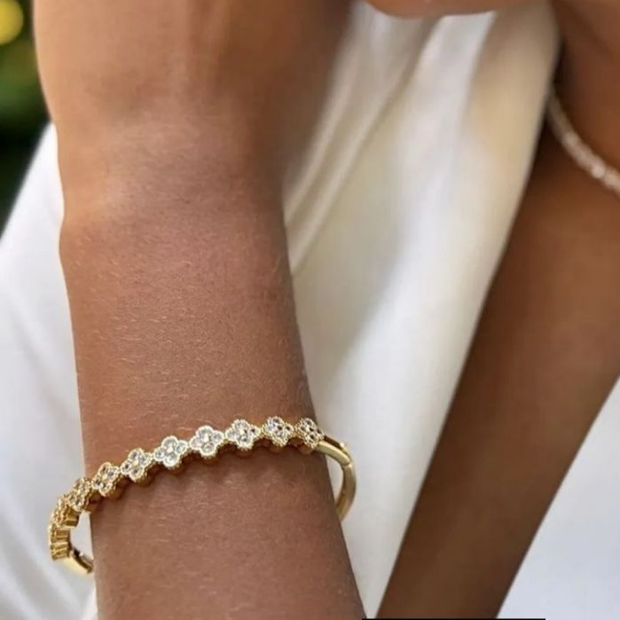 Bracelete Feminino Trevo Cravejado Delicado Folheado Pra Mulher Elegante Moda Bloguera PS54