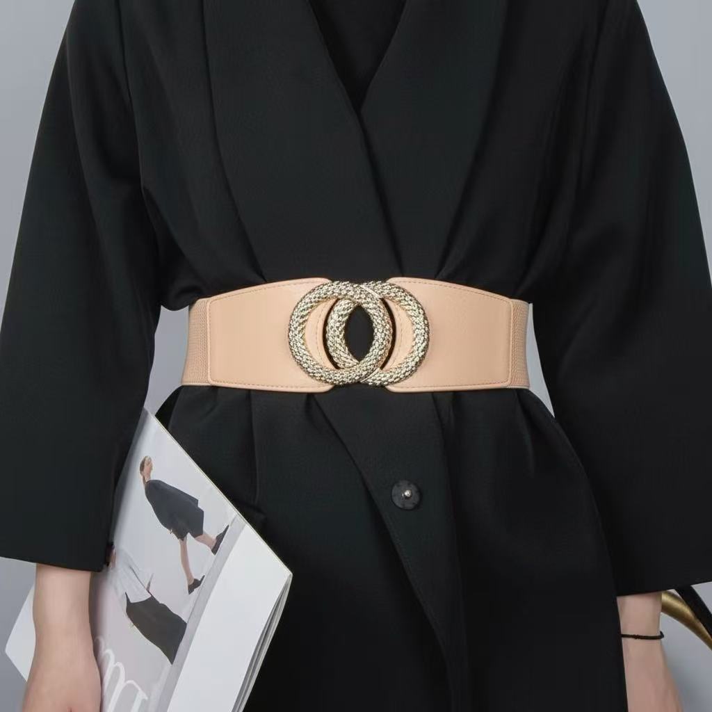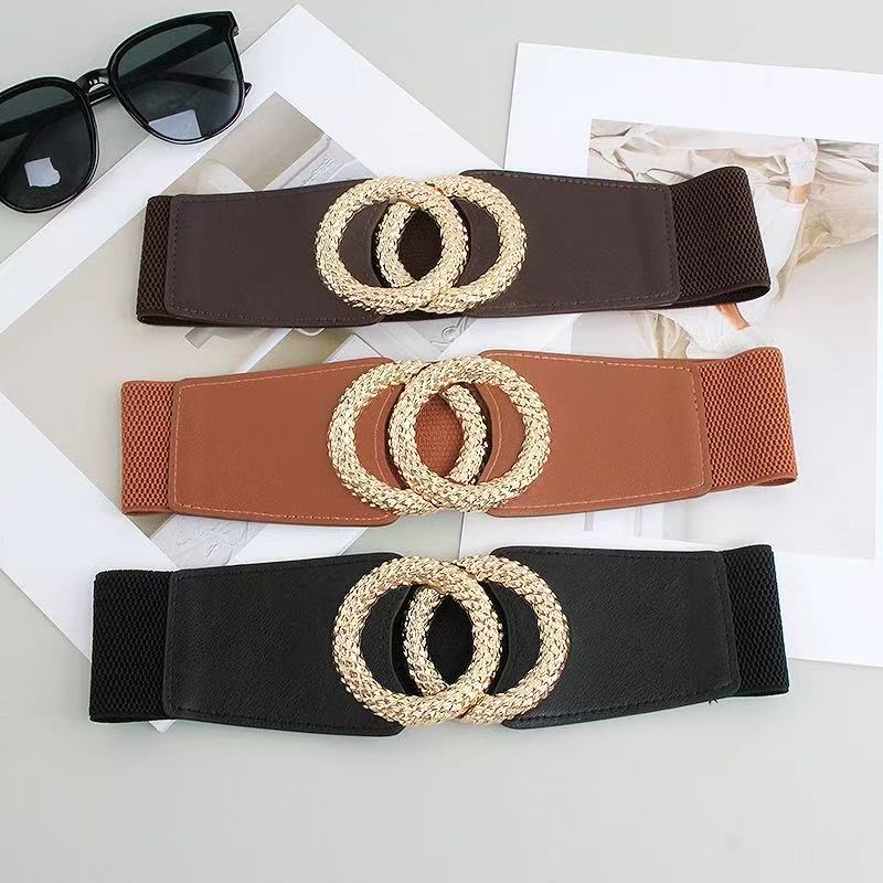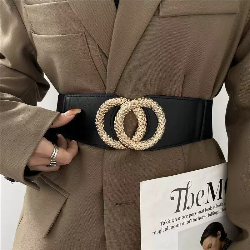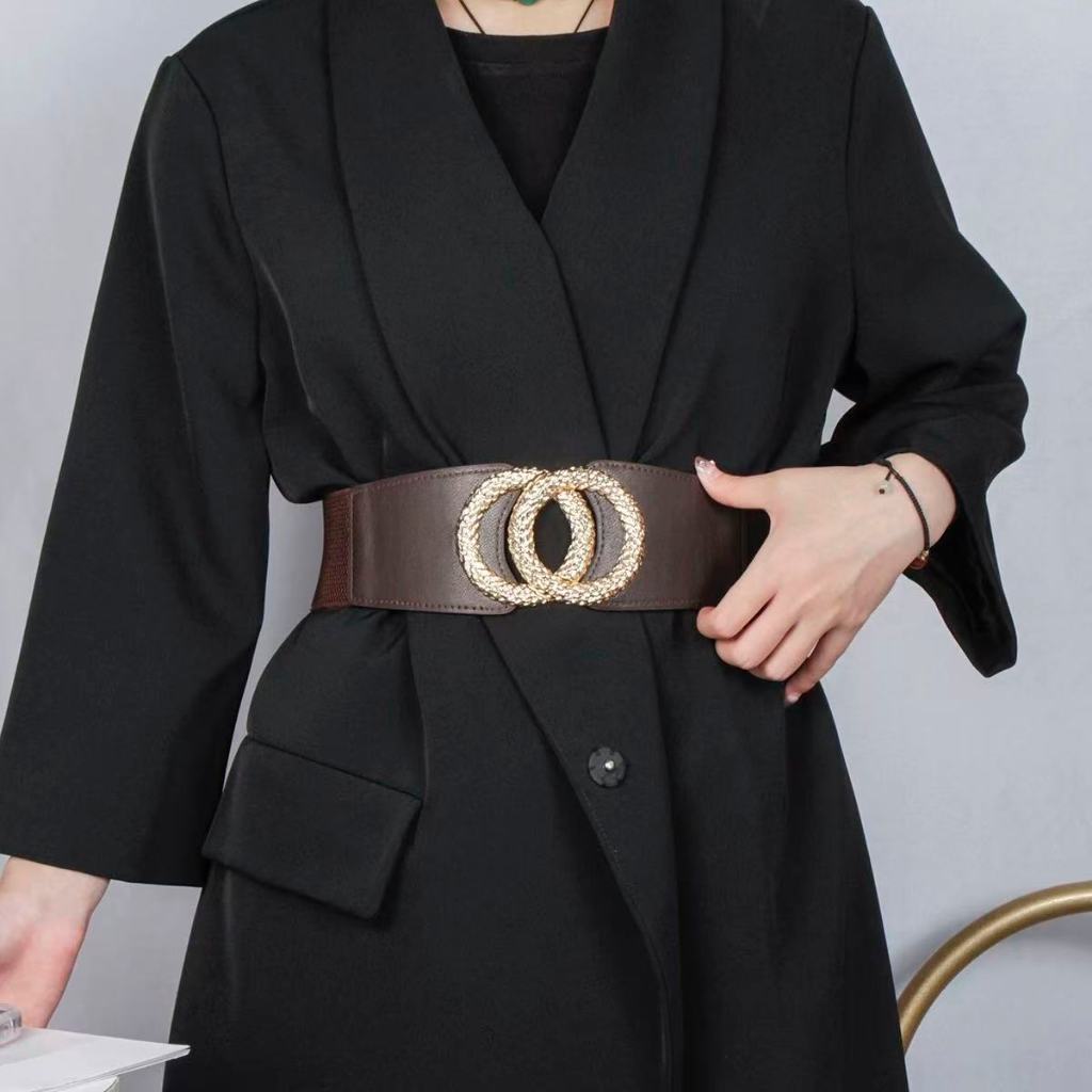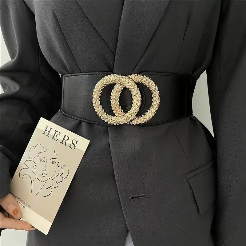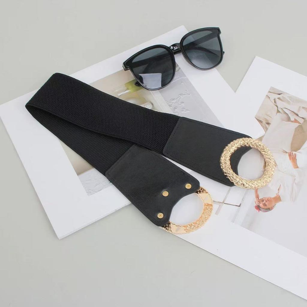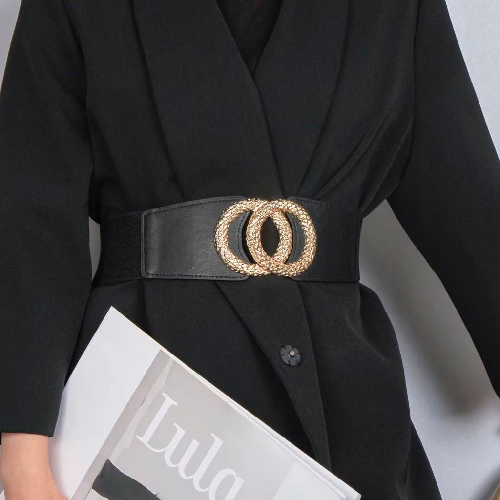Cinto Feminino Largo Preto com Fivela Dupla Dourada Elegante Fashion
