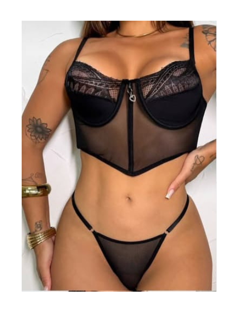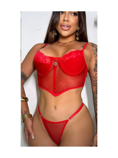Conjuto Cropped e Calcinha Tule Trasparente e Renda Carnval Verão Espera Marido
