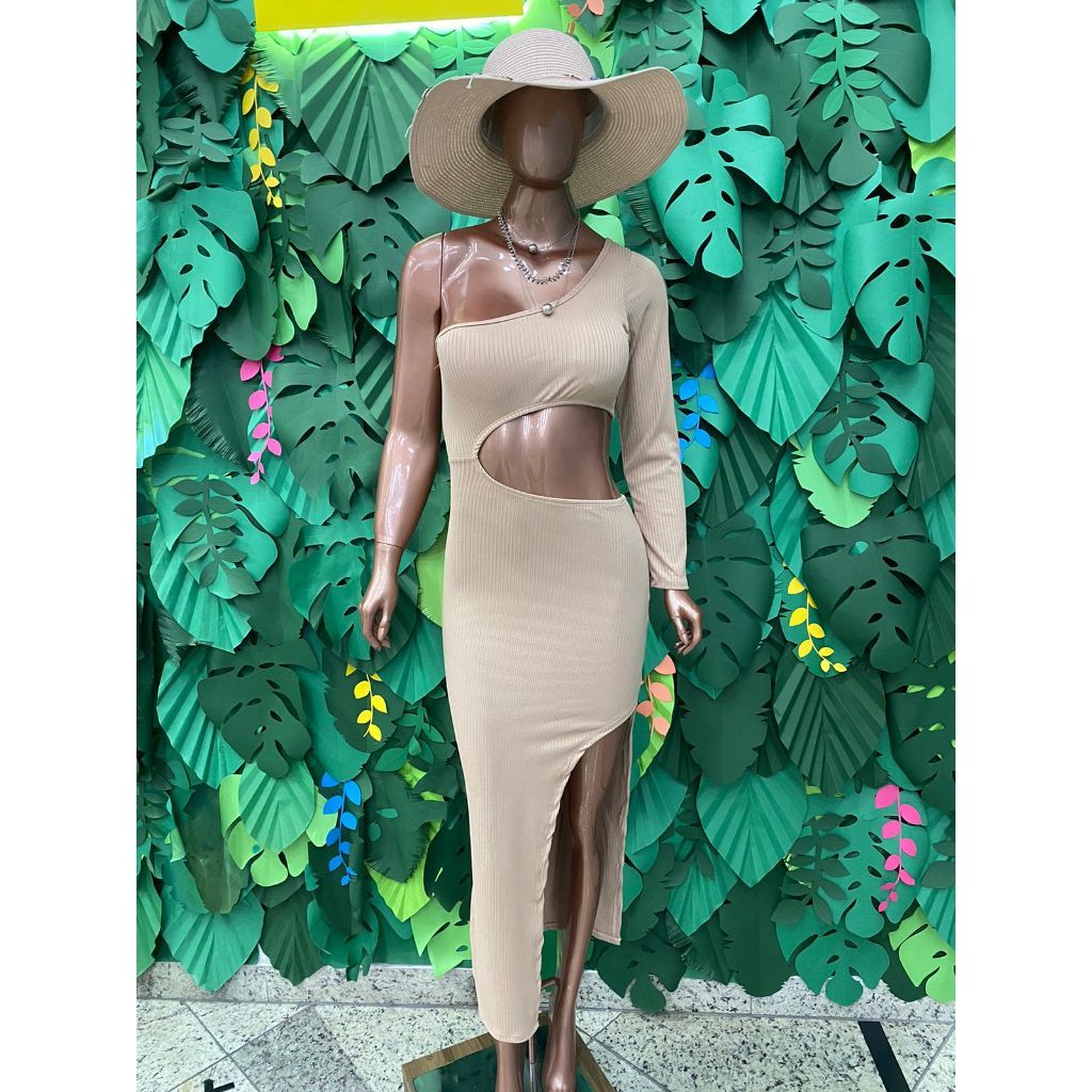 Vestido Mula Manca Longo Colado com Fenda Canelado Promoção