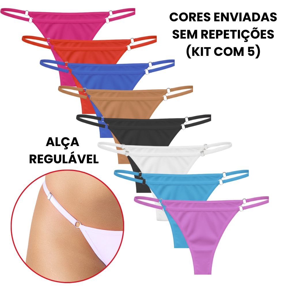 Kit com 3 ou 5 Unidades de Calcinha Microfibra Fio Dental Regulagem Lingerie Sexy