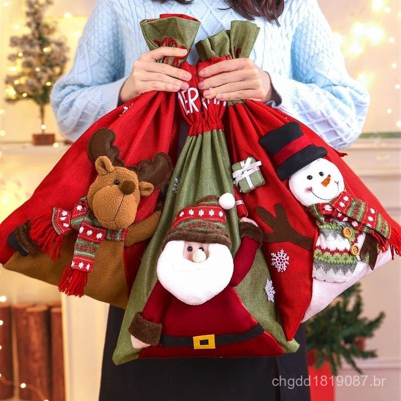 Papai Noel Saco De Presente Grande/Véspera De Natal Maçã/Arranjo De Decorações Pequenas