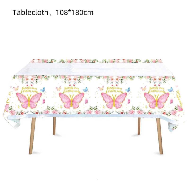 1 Pçs Rosa Borboleta Festa Toalha De Mesa Meninas Favor De Aniversário Plástico Capa Decoração Chá De Bebê Suprimentos D
