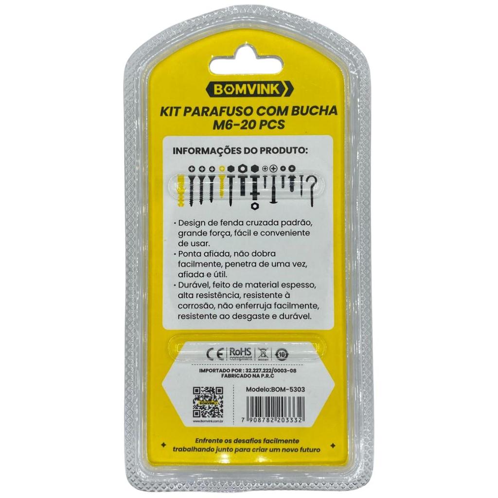 Kit Parafuso M6 Com Buchas 20Pcs - Bomvink