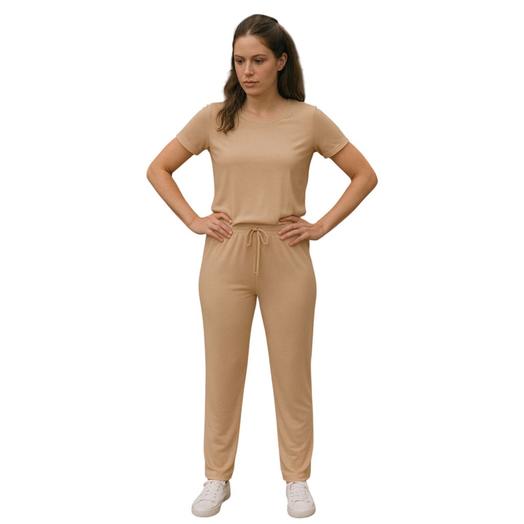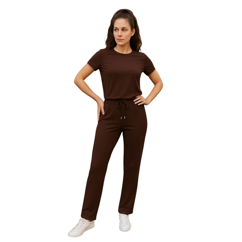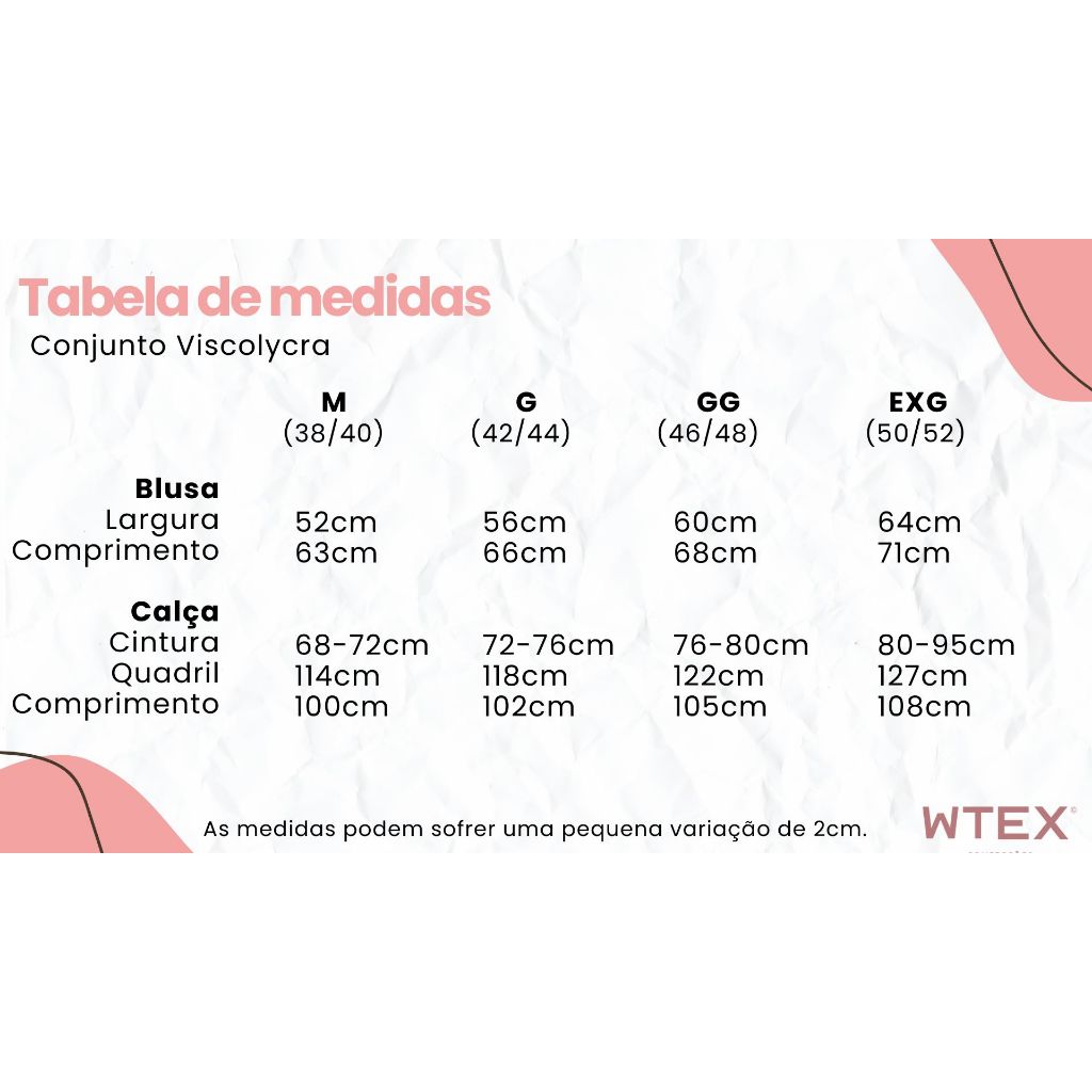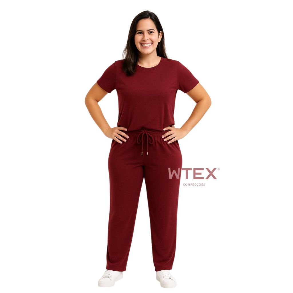 Conjunto Feminino VISCOLYCRA Malha Comfy Blusa Camiseta Manga Curta e Calça Pantalona Cintura Alta