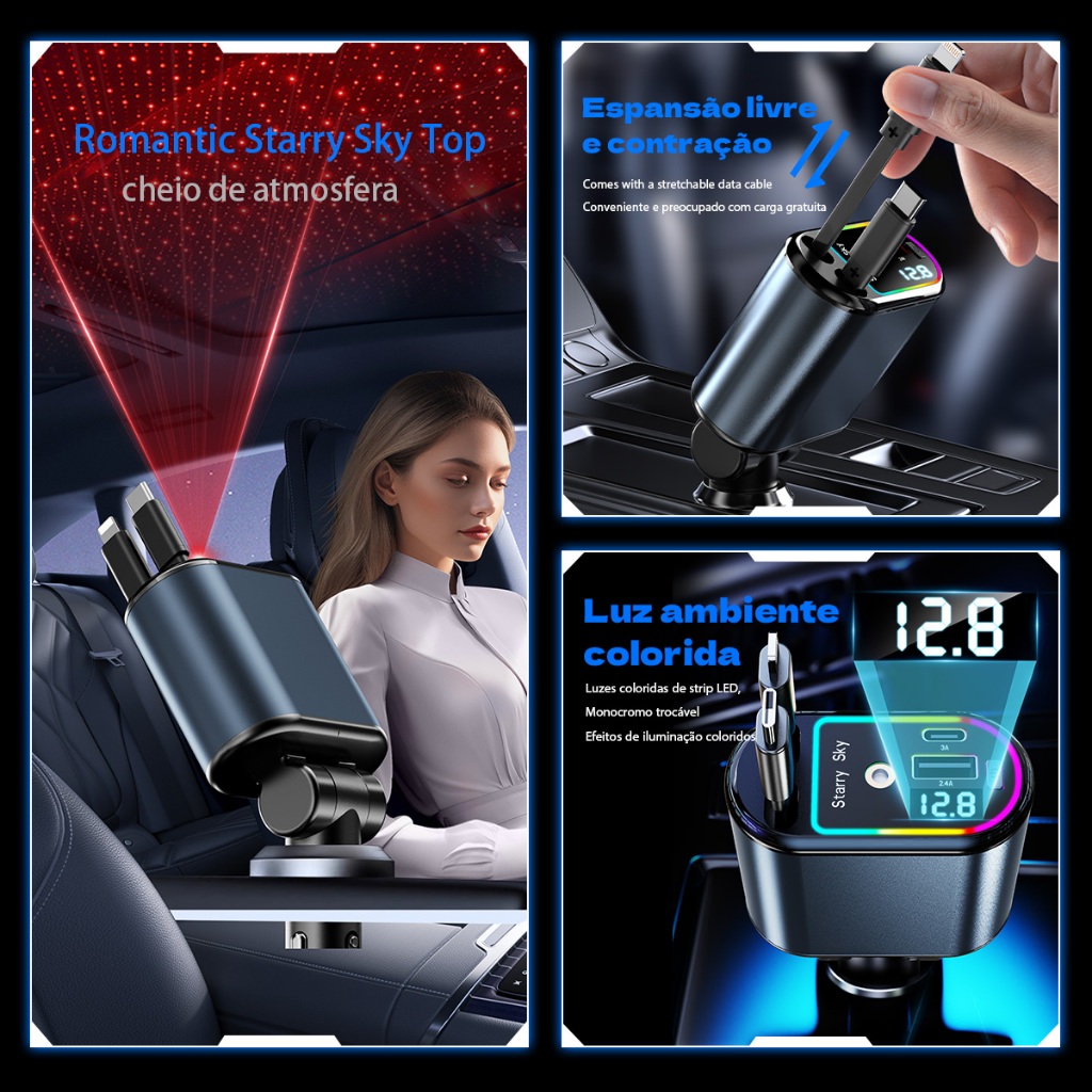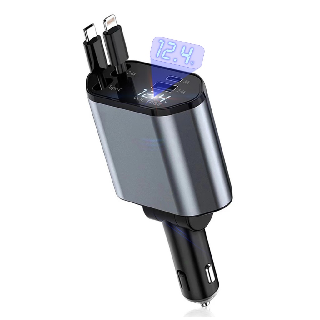 Carregador de carro 120W USB/IOS/TYPE-C Adaptador 4 Em 1 usb veicular com LED carregador super turbo