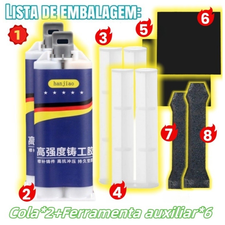100ml Cola Ferro Solda de metal Adesivo Industrial para Reparo Fundido Resistente a Altas Temperaturas Radiador Tanque