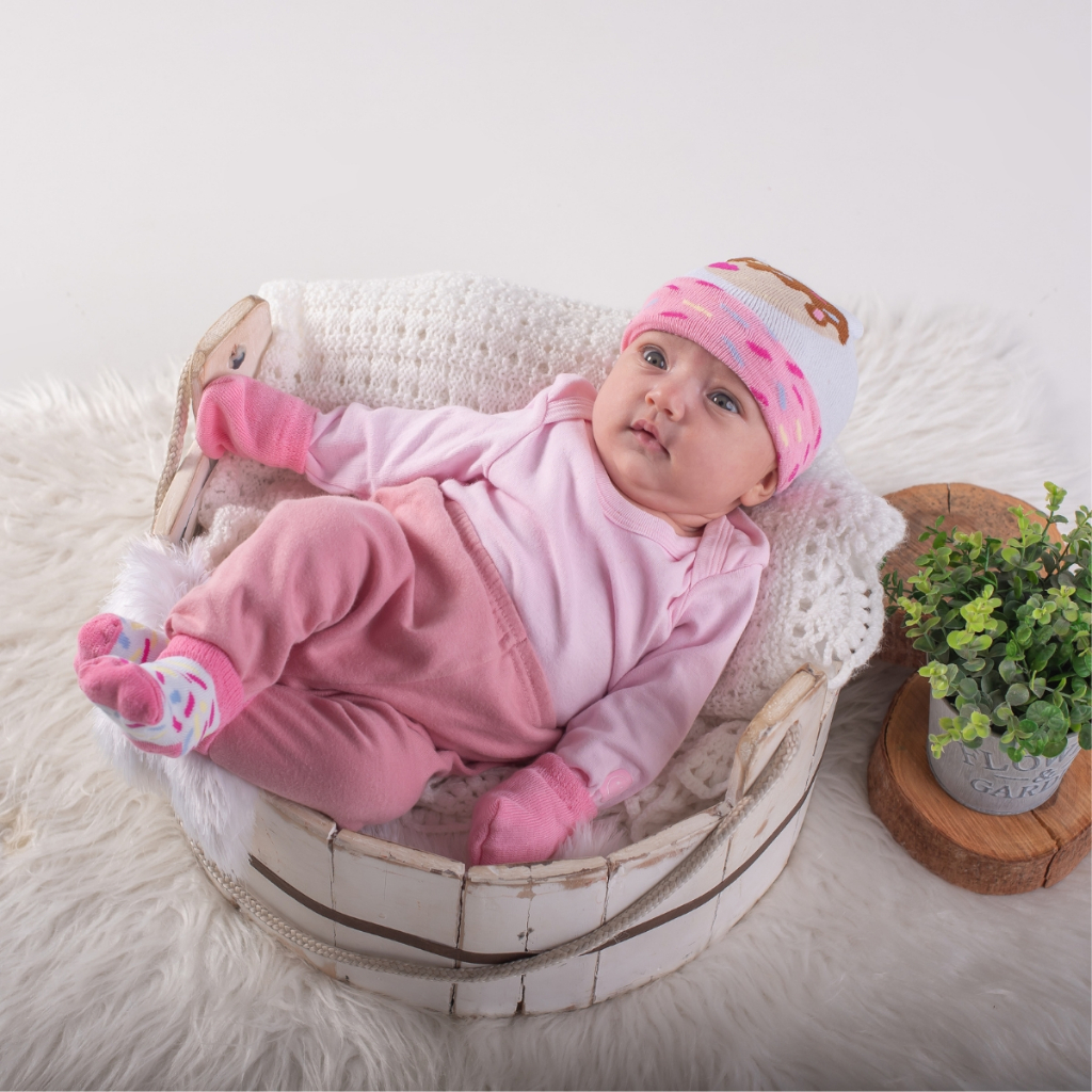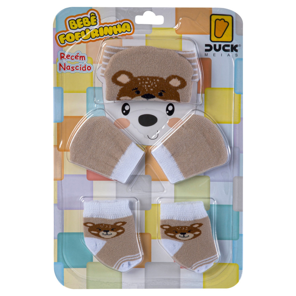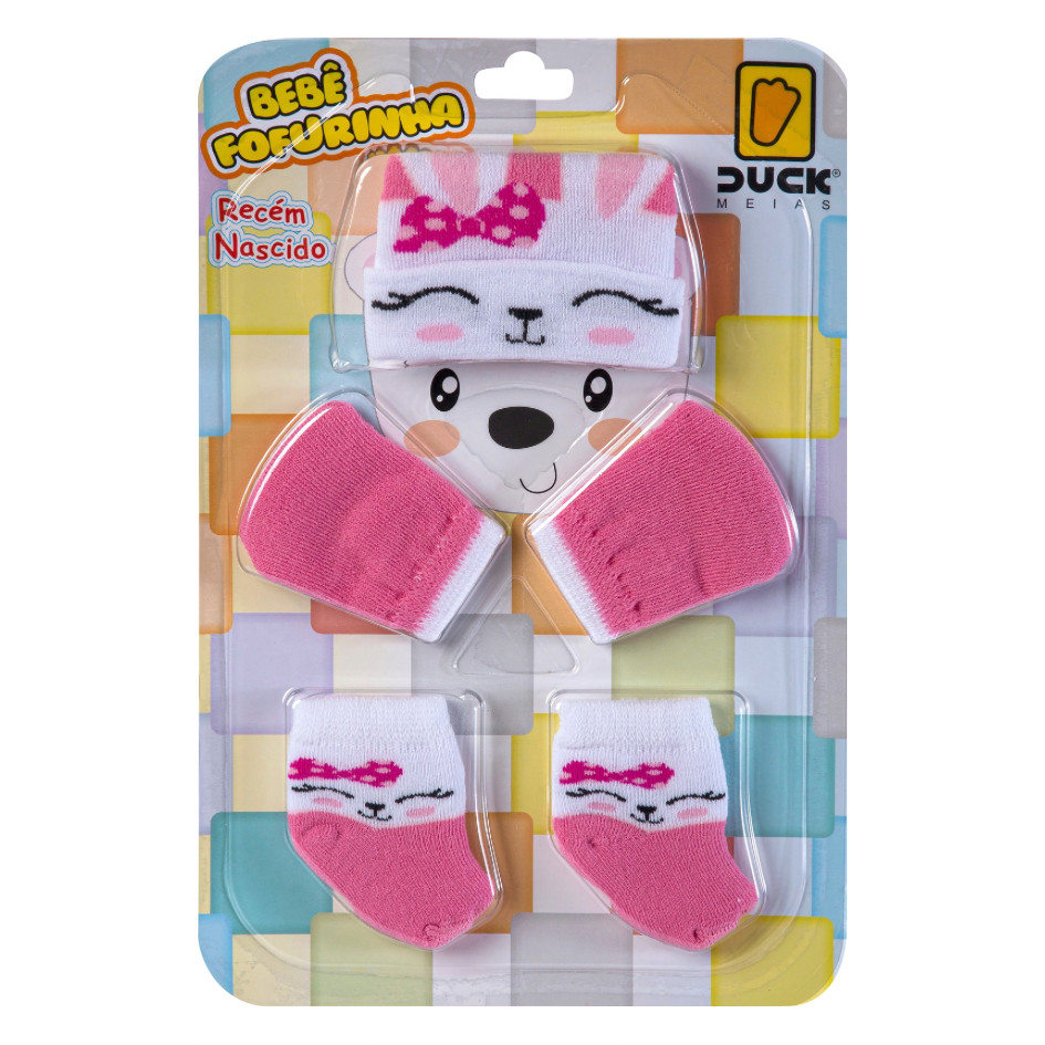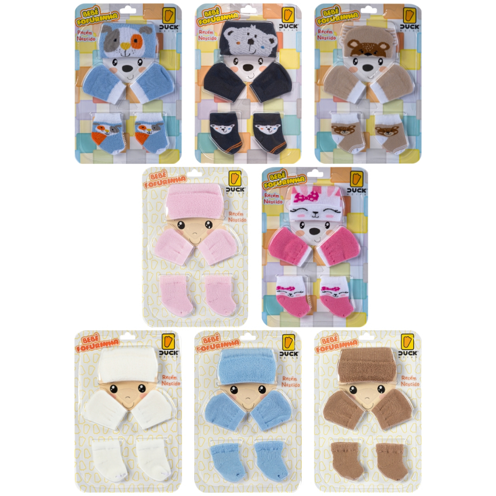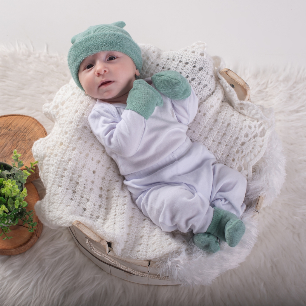 Kit 3 Peças Touca Luva e Meia Bebê Enxoval Maternidade RN Algodão Confortável Fofurinha