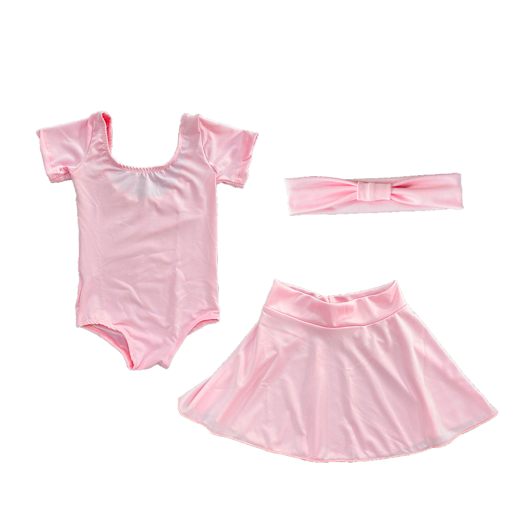 Kit Ballet infantil Com 3 peças: Faixa + Collant + Saia - Para Bailarinas