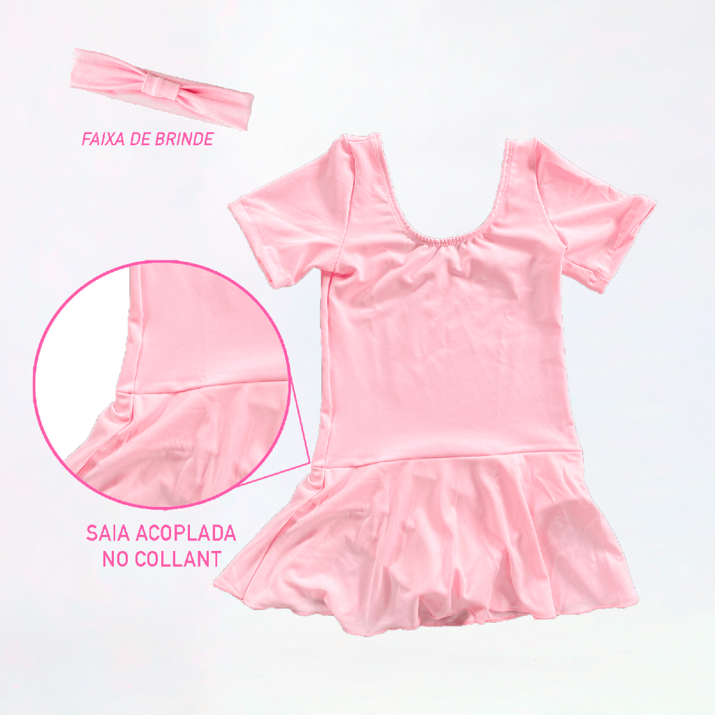 Collant com Saia Acoplada Ballet Infantil Rosa + BRINDE