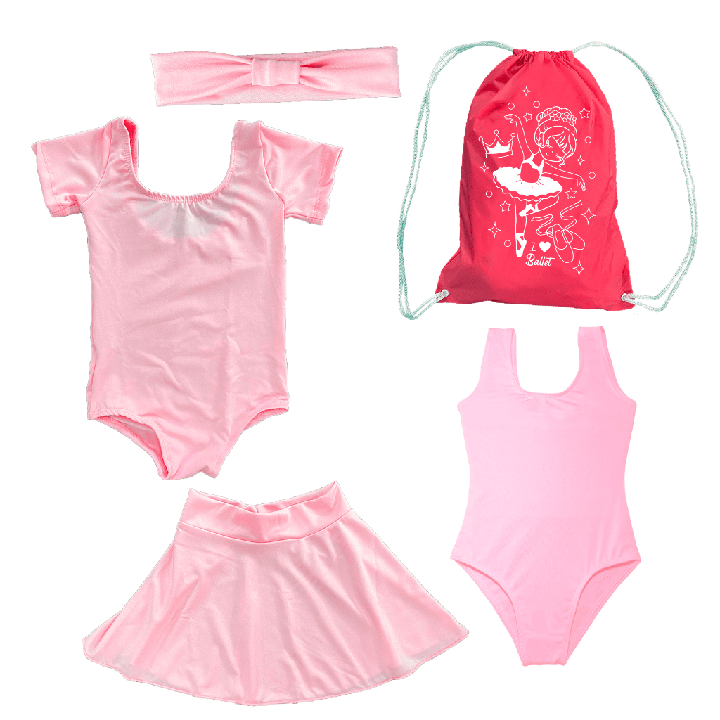 Kit De Ballet Infantil 2 Collant + Saia + Faixa + Bolsa