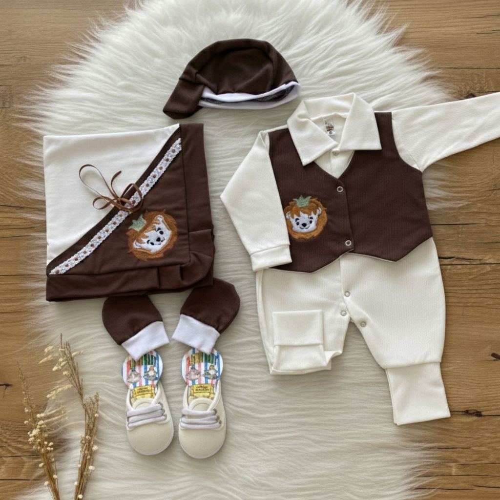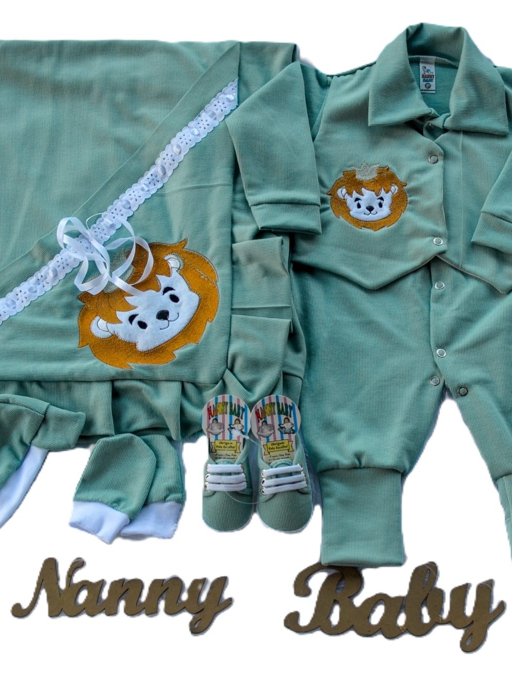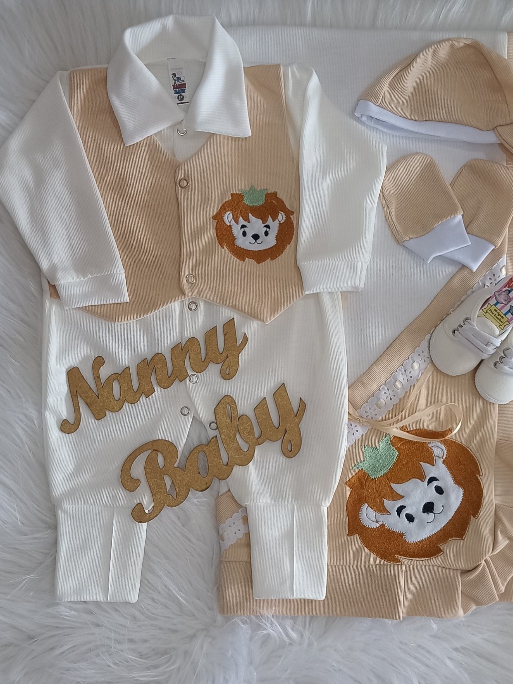 Saída Maternidade Masculino Luxo I Kit Completo 6 peças tamanho RN I Bordado Safari I 100% Algodão