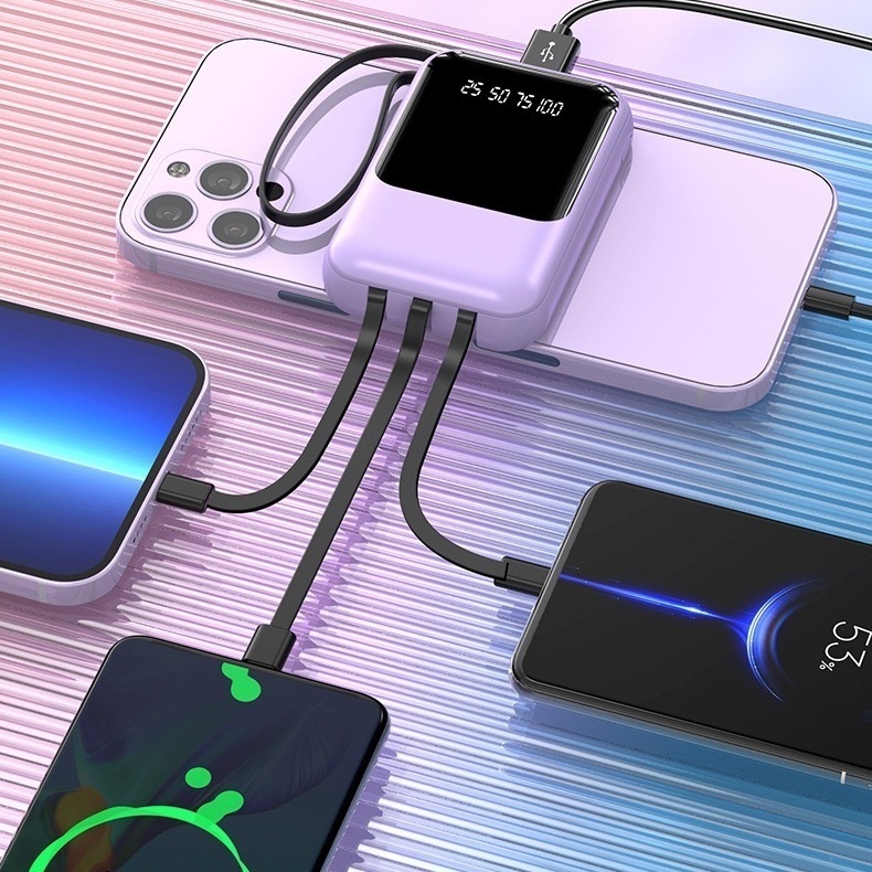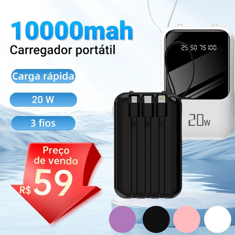 Power Bank 10000mAh Portátil - 4 Cabos Rápidos + Display Digital LED - Recarga Turbo-A6