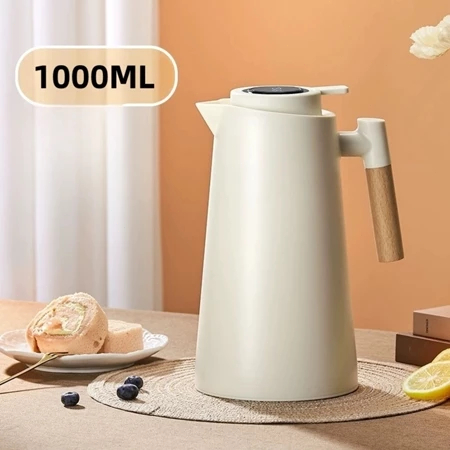 Garrafa Térmica 1 Litro Com Termômetro Led Para Chás / Café Nórdica Design Moderno Cabo Madeira-O14