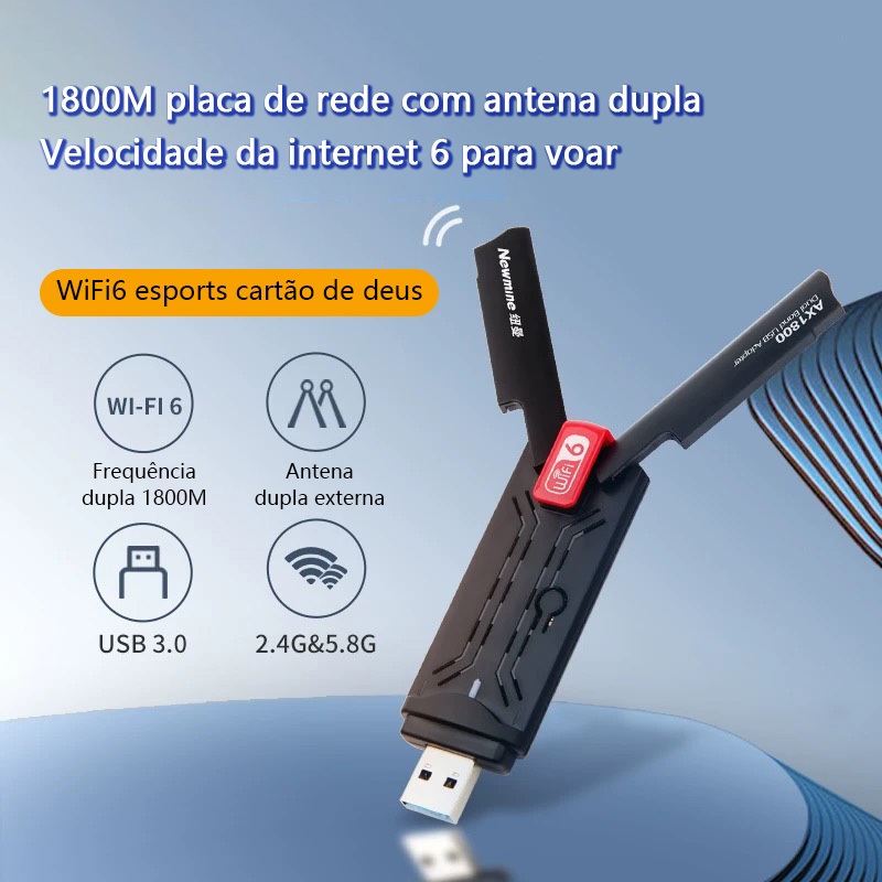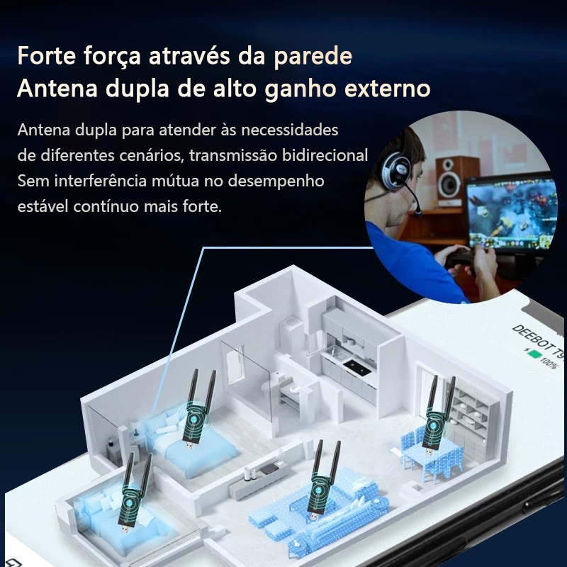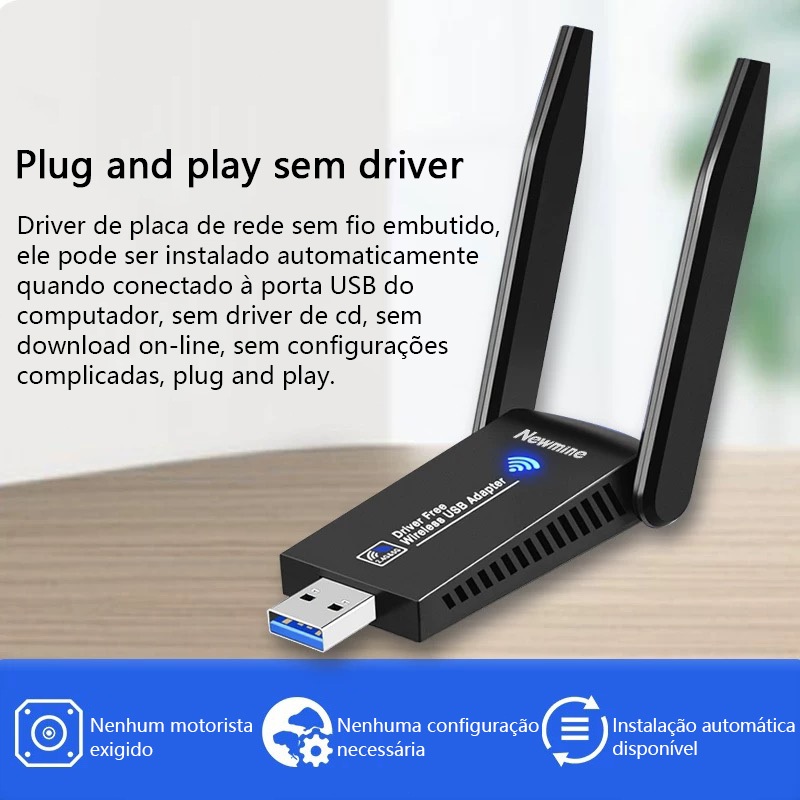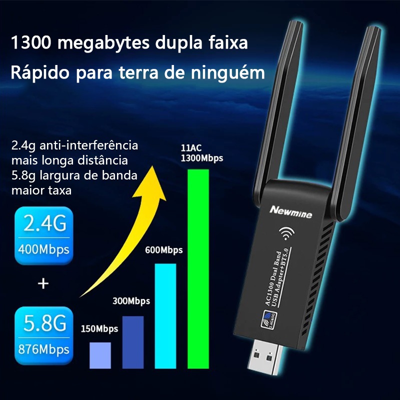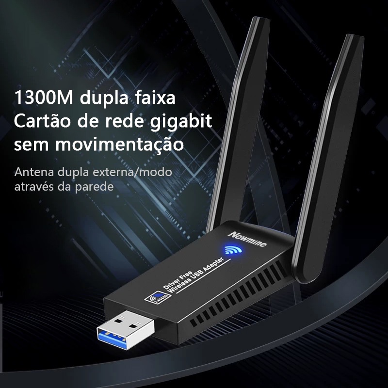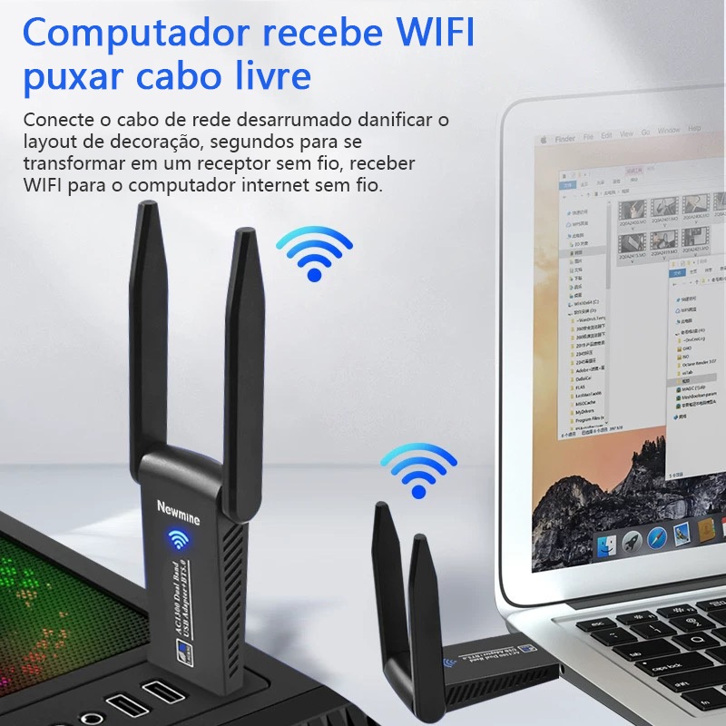 Adaptador Sem Fio USB Wifi 1200Mbps 4 Antena Placa de Rede Dual Band 5GHz para PC Janela Mesa - F11