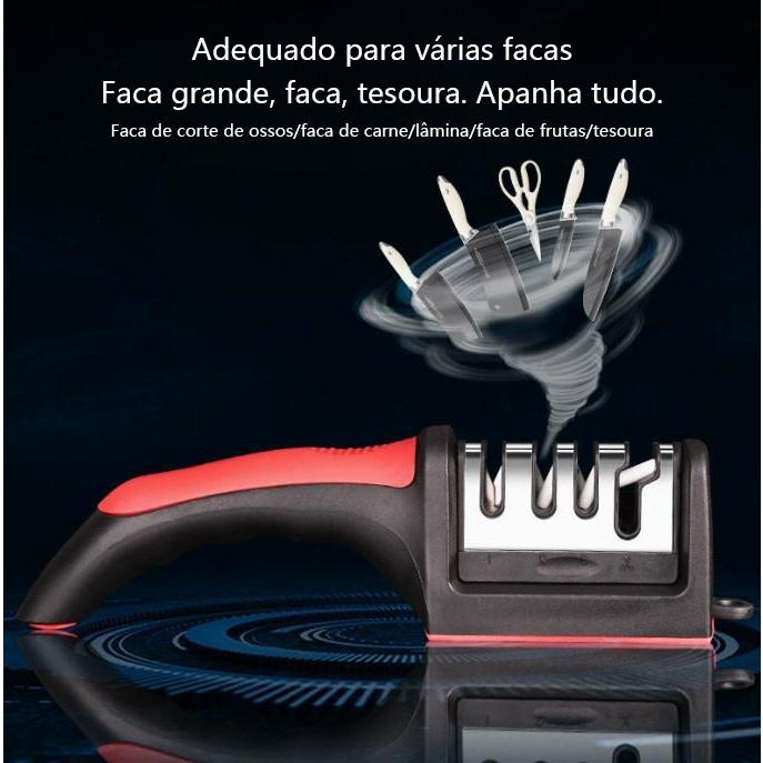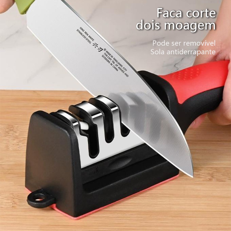 Amolador Afiador De Facas Em Aço Inox Com 3 Afiadores Amolador De Facas Profissional Promoção -Q9