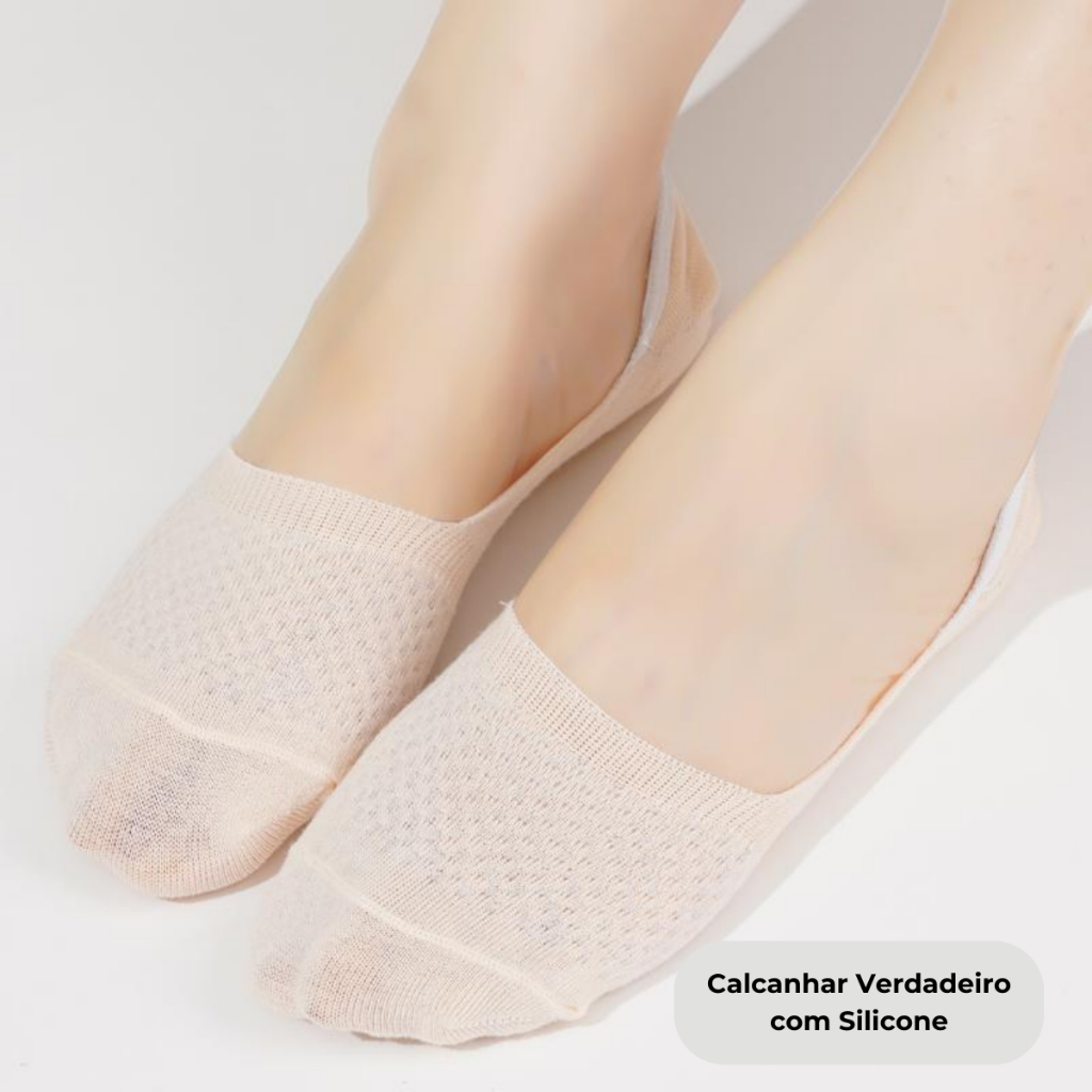 Kit 12 Pares Meia Sapatilha Invisível Feminina Algodão Conforto c/ Silicone Cor Variada Único 33-37