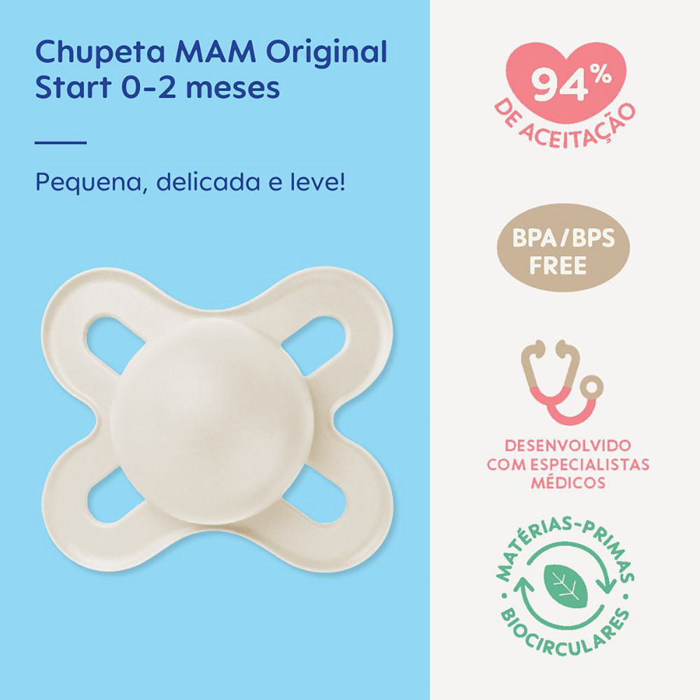 Kit MAM Chupeta Start 0-2 Meses Neutro + Prendedor De Chupeta Neutro
