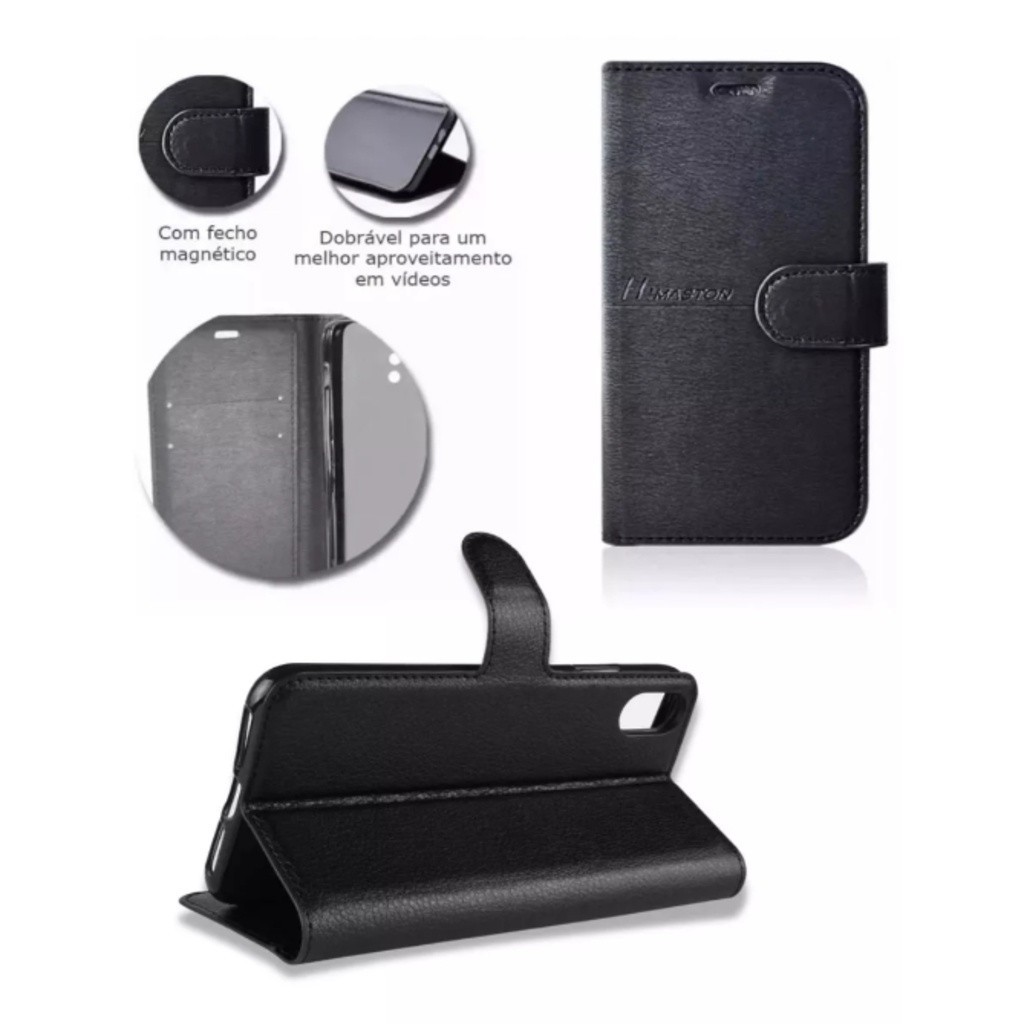 KIT Capa Capinha Carteira Couro + 2 Película 3D Para Samsung A05 A06 A11 A12 A13 A14 A15 A16 A22 A23 A31 A32 A35 Preta