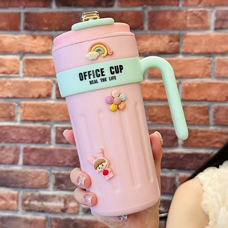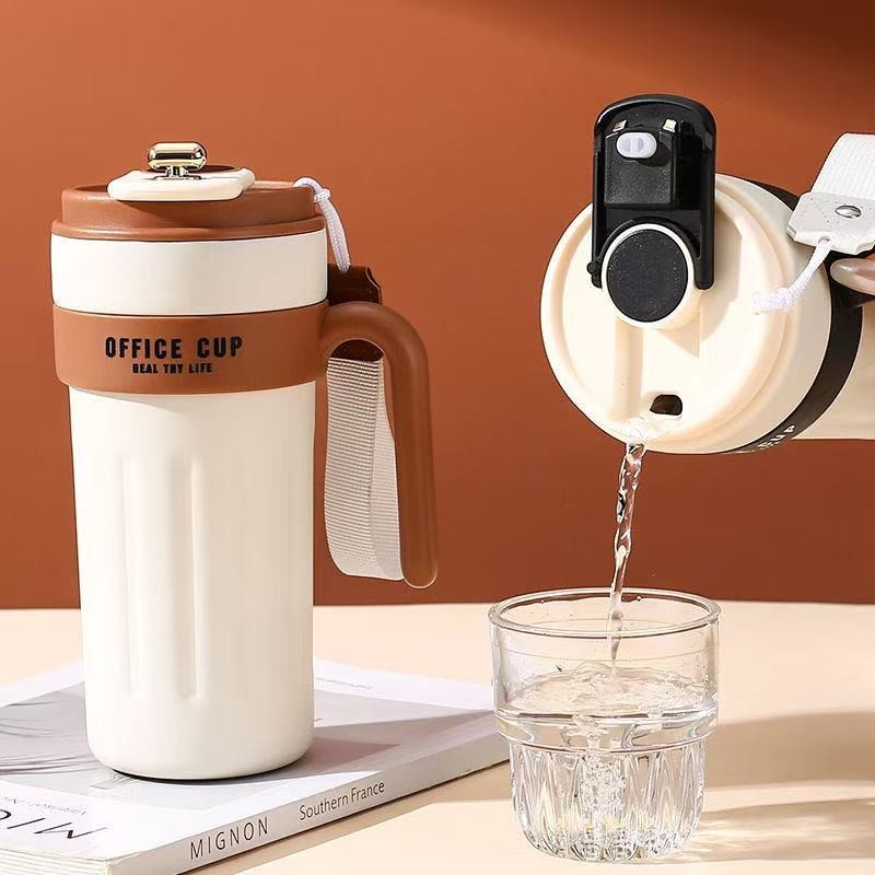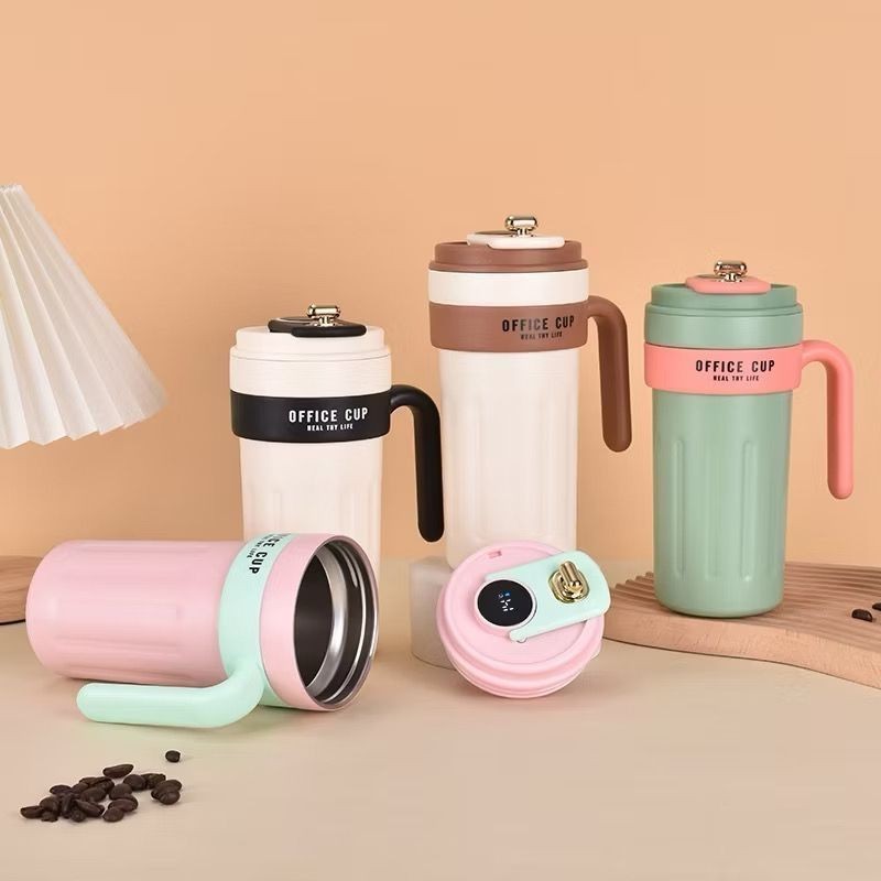 Caneca Térmica De Aço Inox 650ml Com Alça e Termômetro Digital Copo Térmico Para Trabalho ou Escola